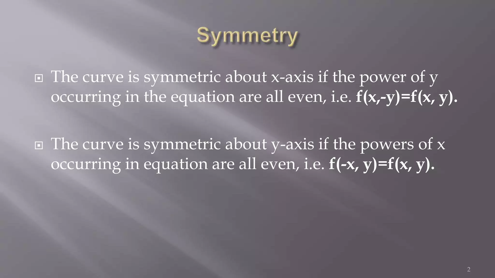 3. The curve is symmetric about the x-axis as the powers of y in the equation are even. There are no other symmetries.
