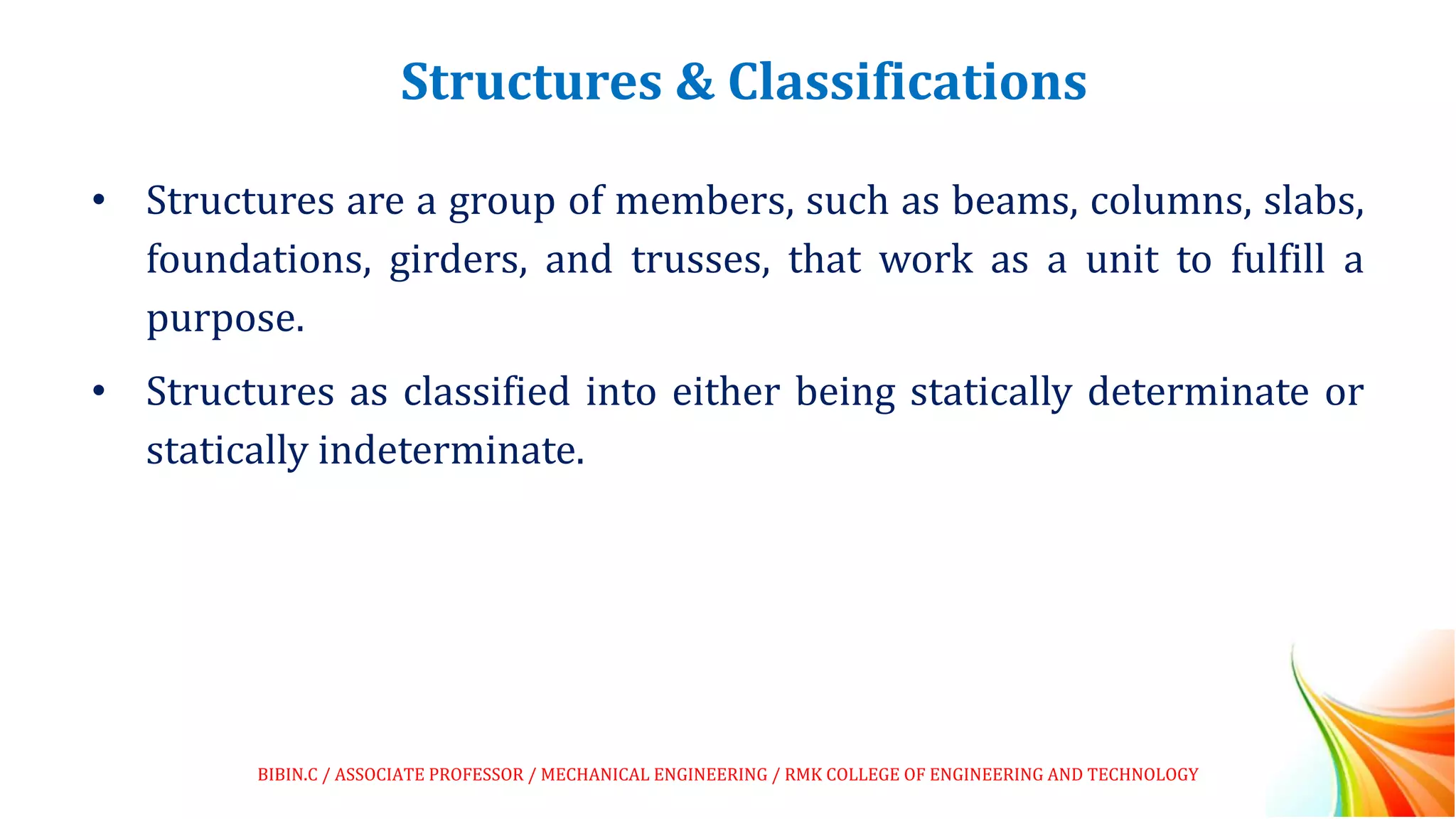 This document discusses beams and beam loading. It defines beams and describes different types of beams including cantilever, simply supported, overhanging, fixed, continuous, and propped cantilever beams. It also discusses beam supports, describing roller, pinned, fixed, and simple supports. Additionally, it covers loads on beams, identifying point loads, distributed loads, and coupled loads. Structures and beams can be either statically determinate or statically indeterminate, and the differences between these two types are explained.