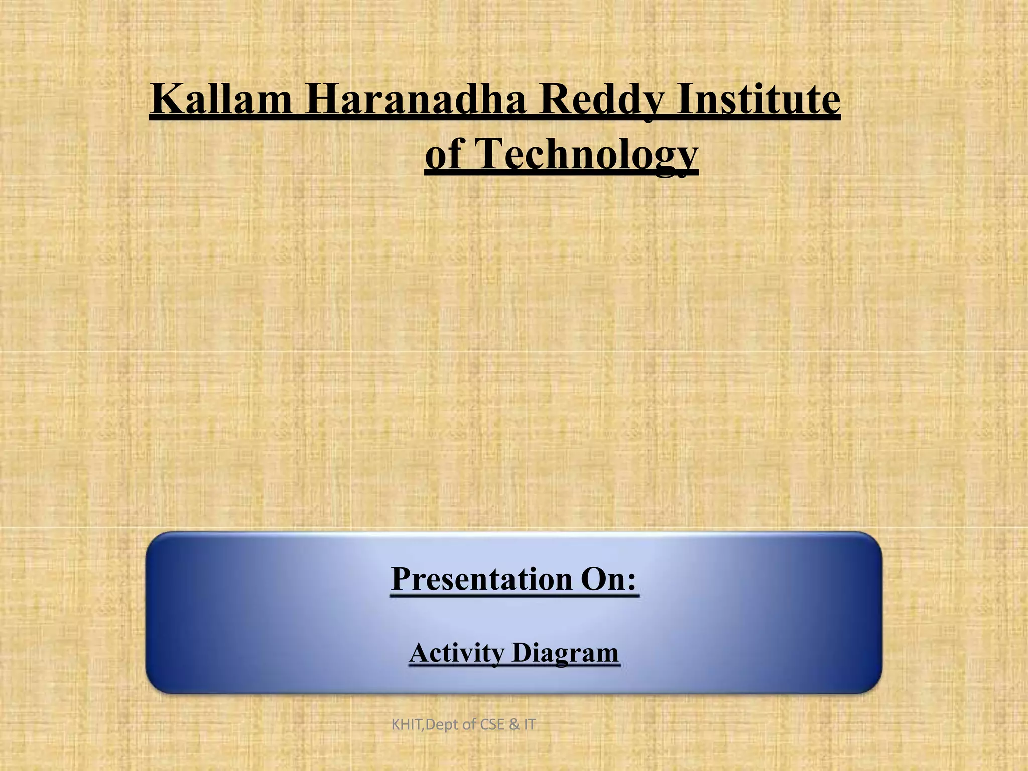 This document presents information on activity diagrams in UML (Unified Modeling Language). It defines activity diagrams as representing the dynamic or behavioral view of a system through workflows and processes. The document outlines the basic notations used in activity diagrams, including activities, flows, decision/merge points, swimlanes, and more. It provides an example activity diagram of a student registration system and discusses limitations of activity diagrams in not conveying responsibility for activities.