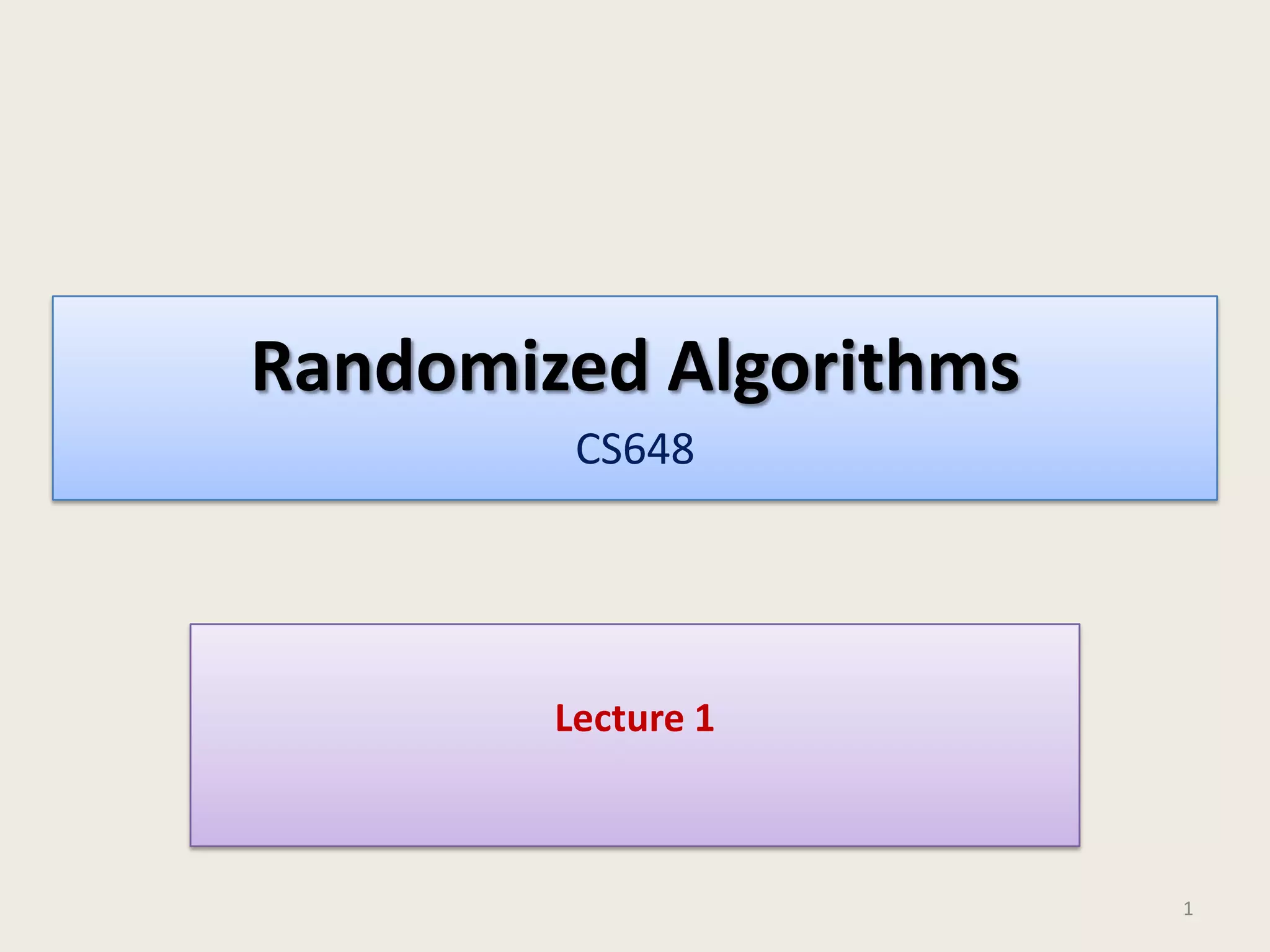 This document provides an overview of the randomized algorithms course. It defines randomized algorithms as algorithms whose output or running time depends on both the input and random bits chosen. Two types are described: Las Vegas algorithms always produce the correct output but have random running time, and Monte Carlo algorithms may produce incorrect output with some probability but have deterministic running time. Randomized algorithms are often simpler and more efficient than deterministic ones. Examples of problems solved more easily with randomized algorithms include sorting, finding the smallest enclosing circle, computing minimum cuts, and primality testing. The course will cover programming assignments, midterm and final exams, with passing criteria outlined. Office hours and contact details are provided.
