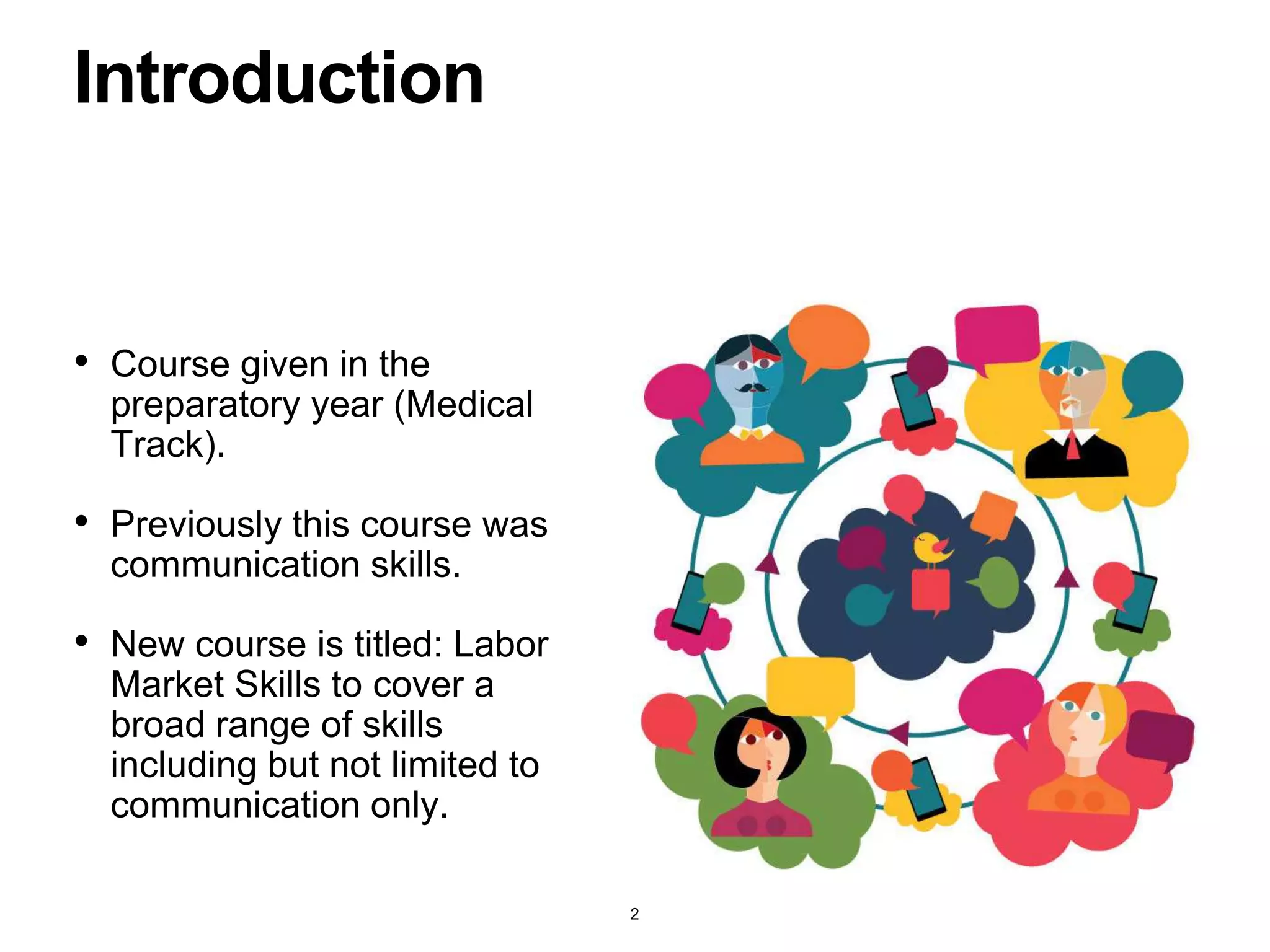 The document outlines a new preparatory year course titled 'Labor Market Skills' focused on equipping university students with essential soft skills required for the labor market. It includes detailed course objectives, a comprehensive curriculum covering areas like effective communication, leadership, and technology usage, along with assessment methods and participation requirements. The course aims to enhance practical success and professional development among students to meet the evolving challenges of the job market.