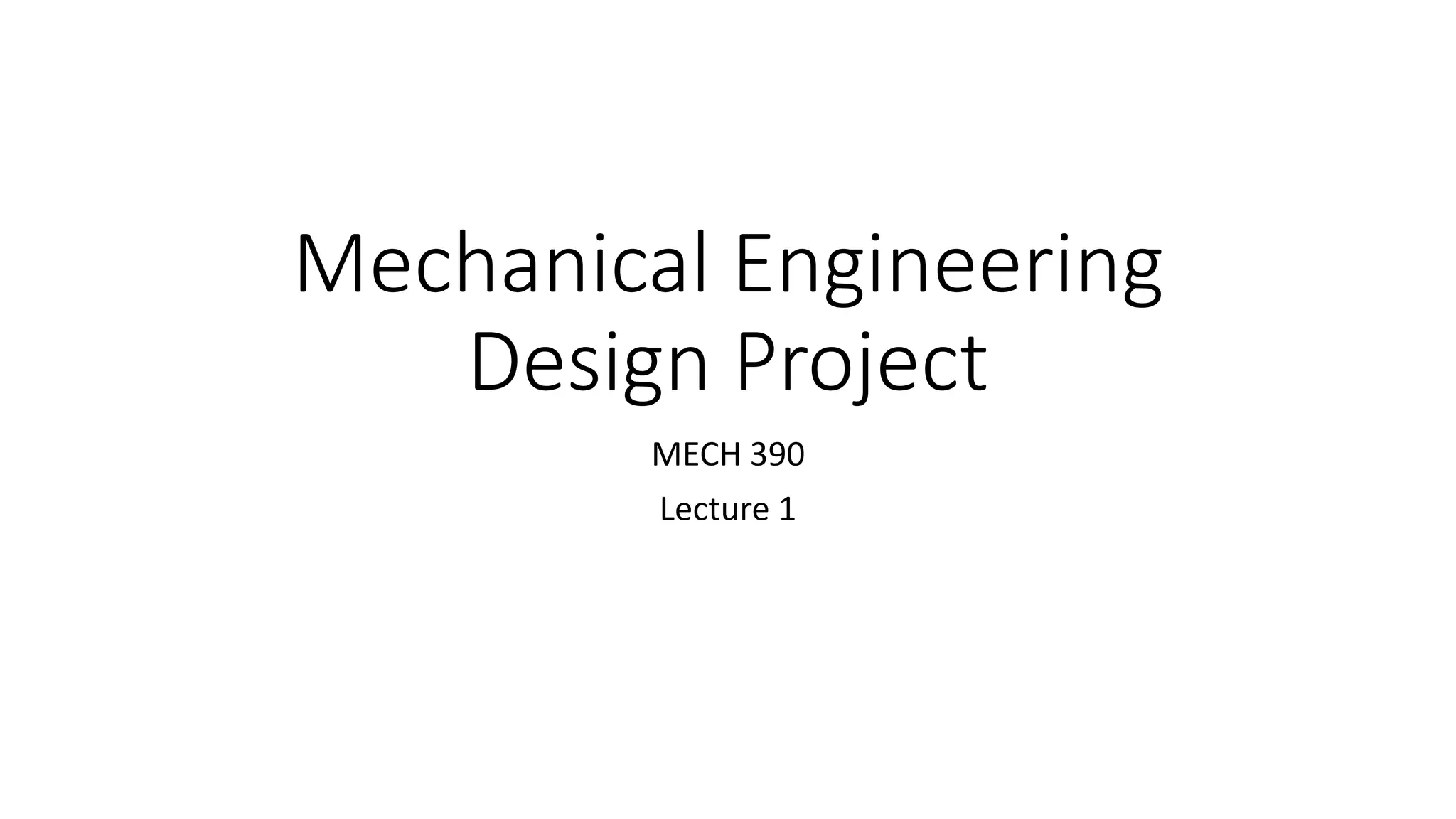 This document provides an overview and outline for a Mechanical Engineering Design Project course (MECH 390). It discusses expectations for the course which include completing a design project in a team, taking a midterm exam, tutorials, and quizzes. Students are expected to apply engineering skills to open-ended problems through concepts, solutions, planning, decision making, modeling, prototyping, and communication. Success requires attention in lectures, studying documentation, and attendance to learn skills needed for engineering design in their career.
