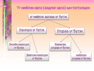 Монгол хэлний үг бүтэх ёс, үг бүтэх аргууд PPTX
