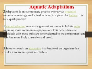 Adaptations include: flat bodies, lateral spines, oil droplets, floats filled with gases, sheaths