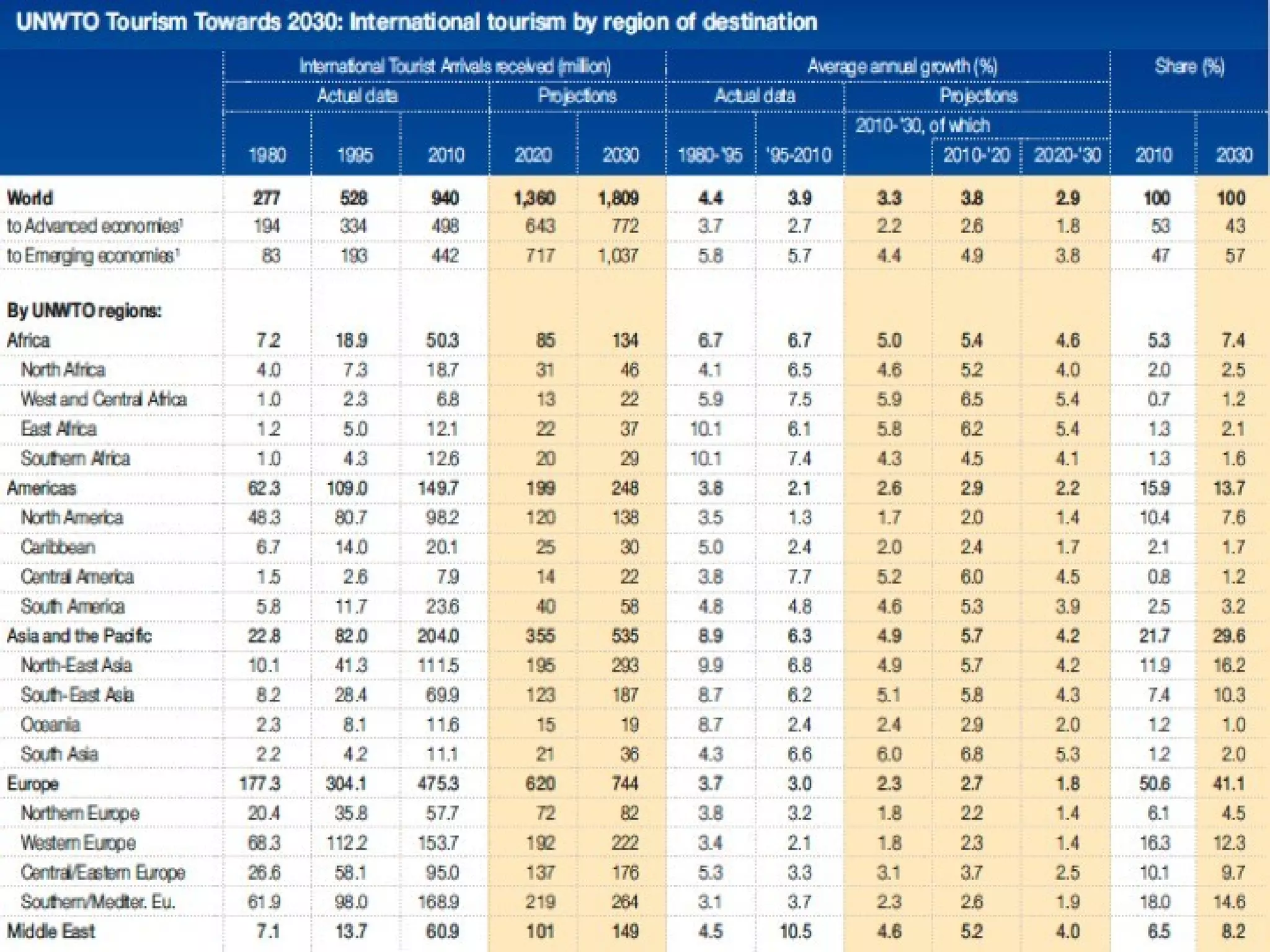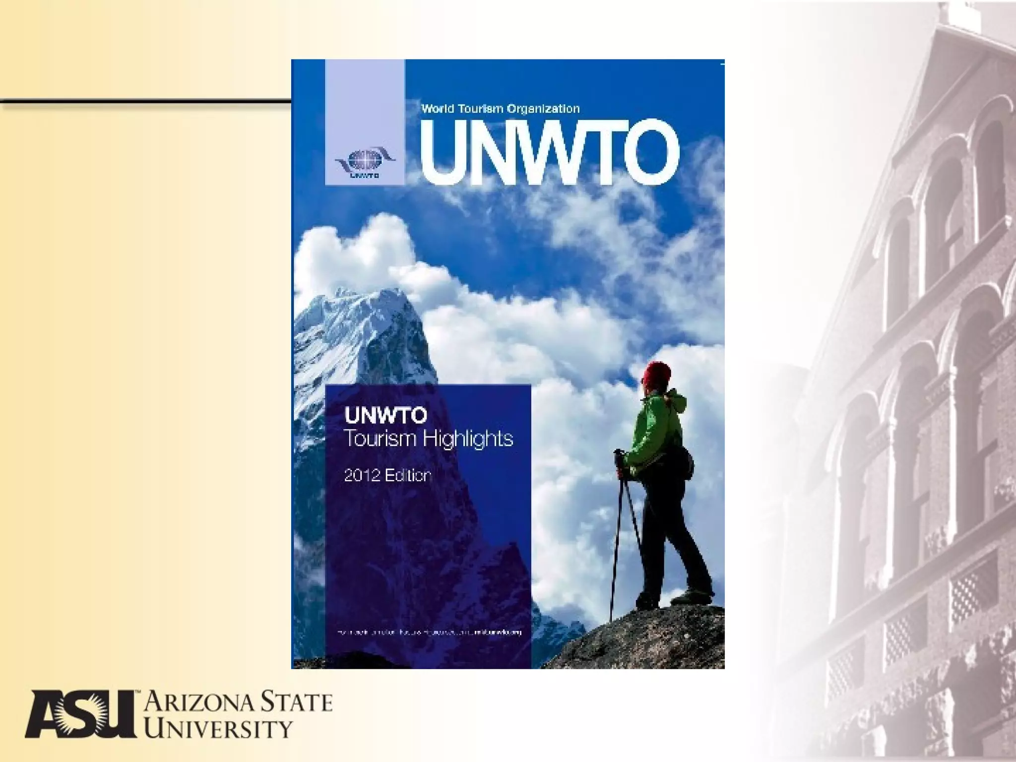 The document discusses global trends in tourism from 2011-2015. It notes that Europe saw the fastest tourism growth in 2011 while the Middle East and North Africa saw declines. Overall international tourist arrivals grew steadily from 25 million in 1950 to over 940 million in 2010. The document also outlines some of the key benefits and disadvantages of tourism from an economic, social, cultural, and environmental perspective.