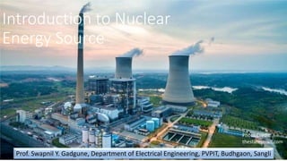 Nuclear energy works by using nuclear reactions to generate heat from uranium-235, with this heat then used to power steam turbines and produce electricity. Specifically, a neutron is absorbed by a uranium-235 nucleus, causing it to split into lighter elements and release more neutrons and a small amount of energy, with this energy capture process repeating to produce a sustained nuclear reaction. This document provides a brief introduction to how nuclear energy works at the most basic level by using nuclear fission to generate heat from uranium.