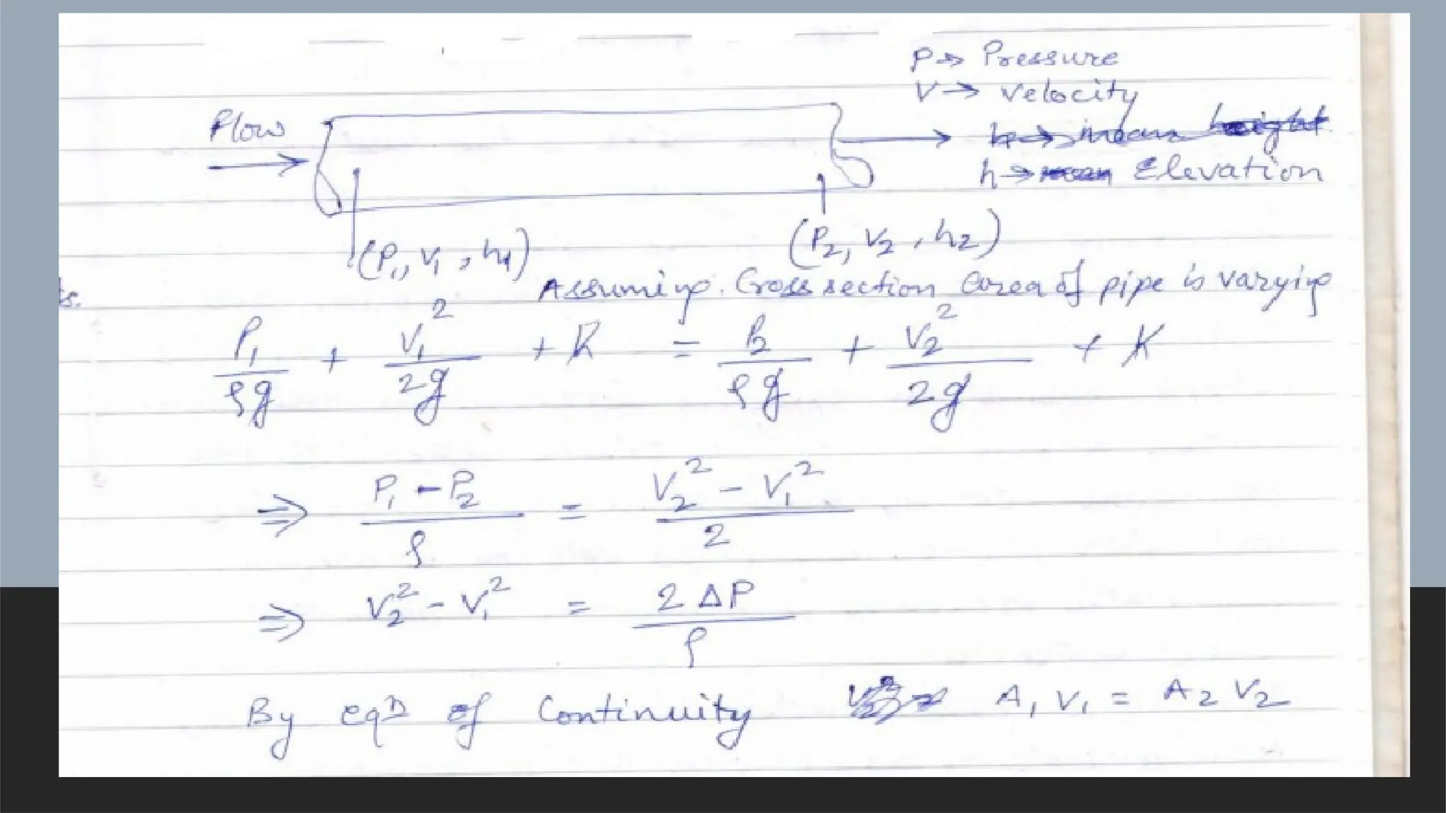 Assume fluid is incompressible. Elevation of pipe at all location is constant.