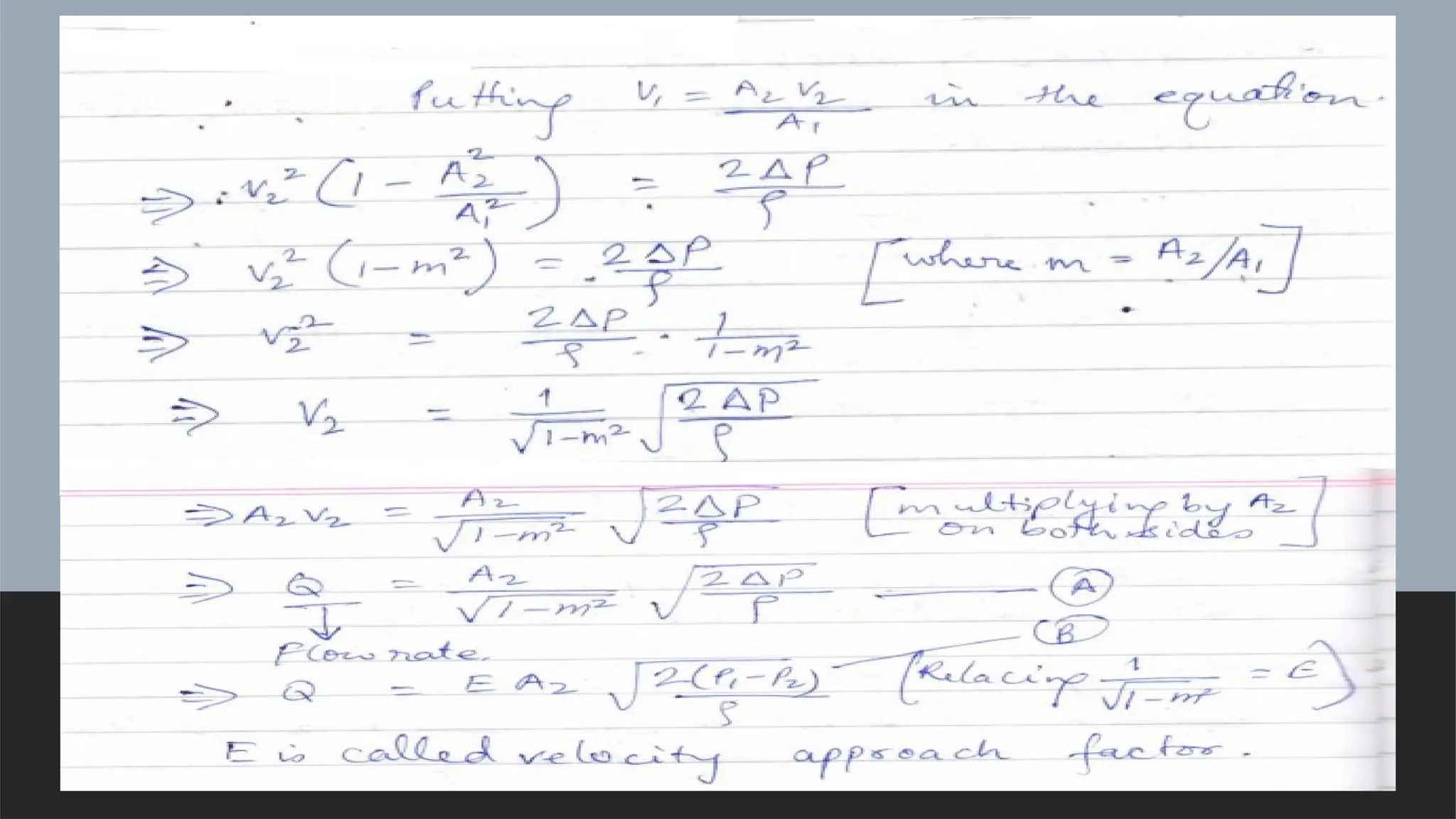 the orifice; since eqn ‘B’ have been derived for the stream area, these