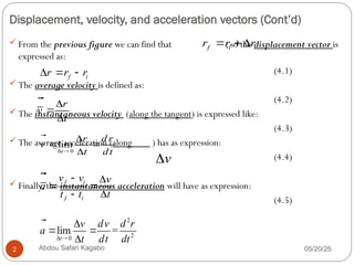 Displacement, velocity, andacceleration vectors (Cont’d)