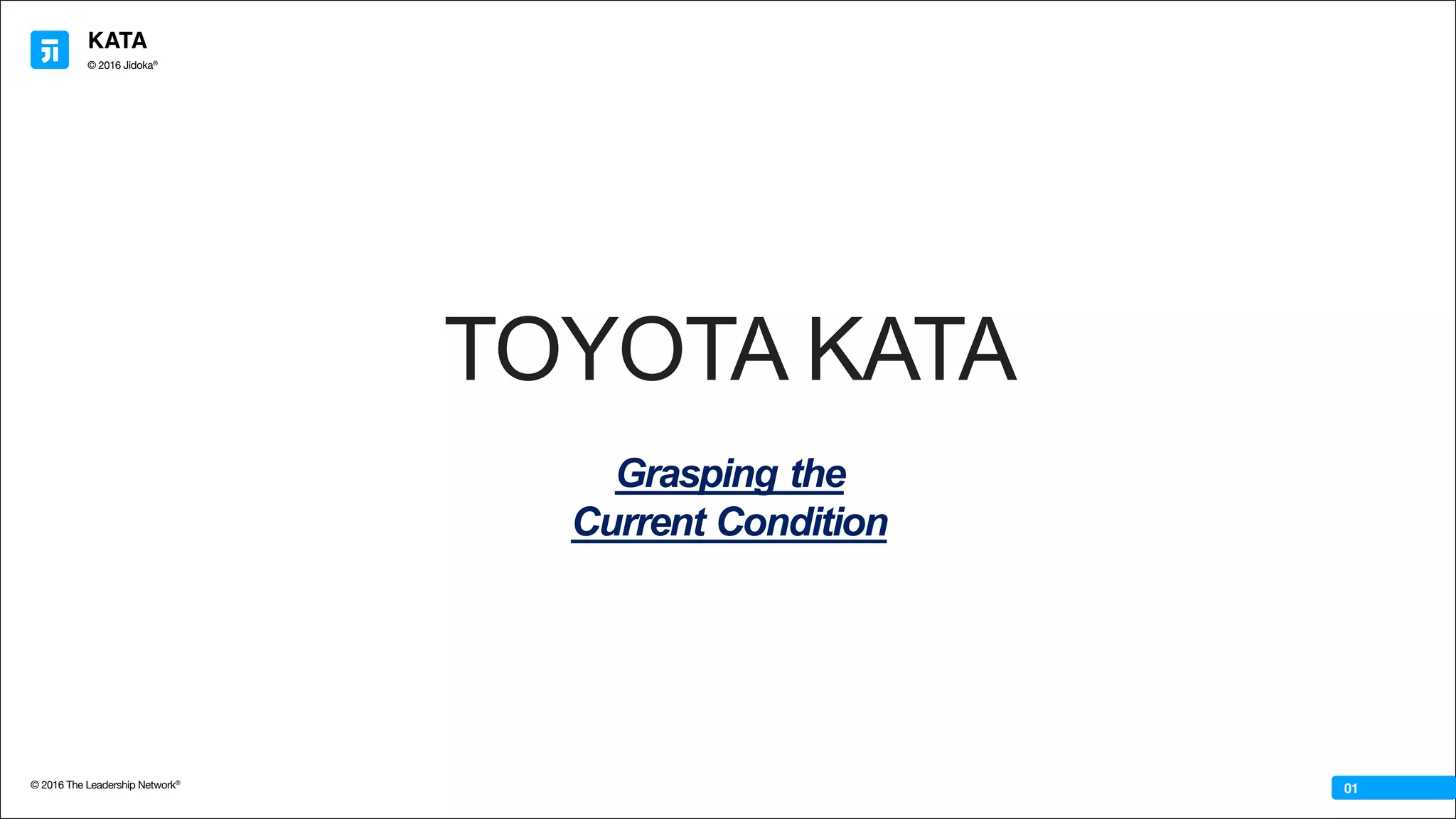 This document provides guidance on using the Toyota Kata approach to continuously improve processes. It discusses key steps in grasping the current condition including drawing a block diagram of the process flow, timing exit cycles at each workstation, and analyzing equipment capacity. The number of necessary operators is calculated by summing the lowest repeatable times for each workstation and dividing by the planned cycle time. Outcome metrics like output per shift should be graphed to understand performance. The overall goal is to thoroughly understand the existing process before establishing new targets for improvement.