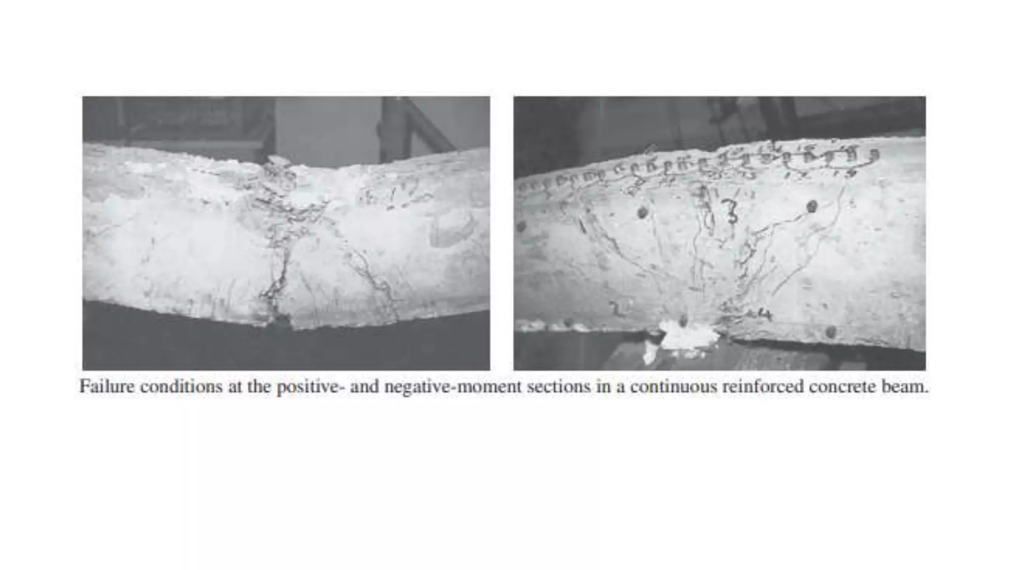 3. It describes the behavior of reinforced concrete beams under increasing loads and how cracking occurs initially in the tension side before steel reinforcement engages to resist bending.