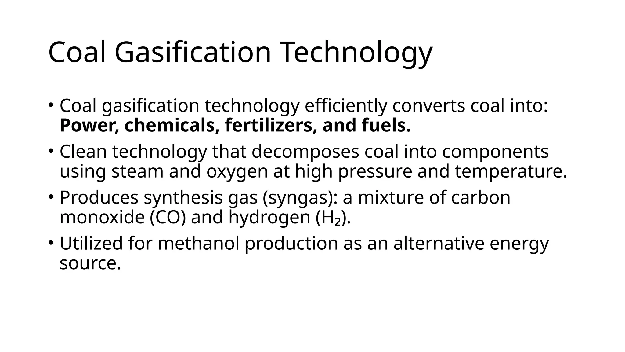 Coal gasification technology efficiently converts coal into power, chemicals, fertilizers, and fuels by decomposing it into synthesis gas (syngas) using steam and oxygen at high temperatures and pressures. Key applications include power generation, fertilizer production, methanol synthesis, and hydrogen production, with specific focus on the selection of suitable coal and essential gas cleaning processes. Different gasification techniques, such as fixed bed, moving bed, fluid bed, and entrained-flow gasifiers, vary in operational efficiency and suitability for different coal types.