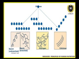 This lecture covers the various types of carbohydrates, including simple and complex carbohydrates, their functions in the body, and their impact on health. It explains carbohydrate digestion, metabolism, and the complications associated with diabetes and hypoglycemia. The presentation emphasizes the importance of fiber, carbohydrate intake recommendations, and the role of carbohydrates in food technology.