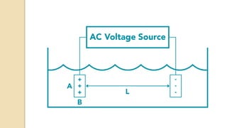 Conductometry uses a conductivity cell and conductometer to measure the conductance of electrolytic solutions. There are various types of conductivity cells, including some that have parallel platinum electrodes. Conductometry has applications like determining the solubility of sparingly soluble materials, studying reaction kinetics, measuring the degree of dissociation of weak electrolytes, assessing the basicity of organic acids, and determining concentrations.