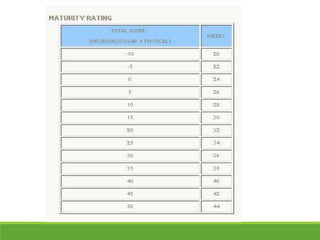 This document provides an overview of the normal newborn period, defining key stages from birth to 28 days, including early and late neonatal periods. It emphasizes the significant physiological changes a newborn undergoes at birth and details assessments such as the Apgar score for evaluating newborn health. Additionally, it describes various physical characteristics and common conditions observed in newborns, along with vital statistics and measures.