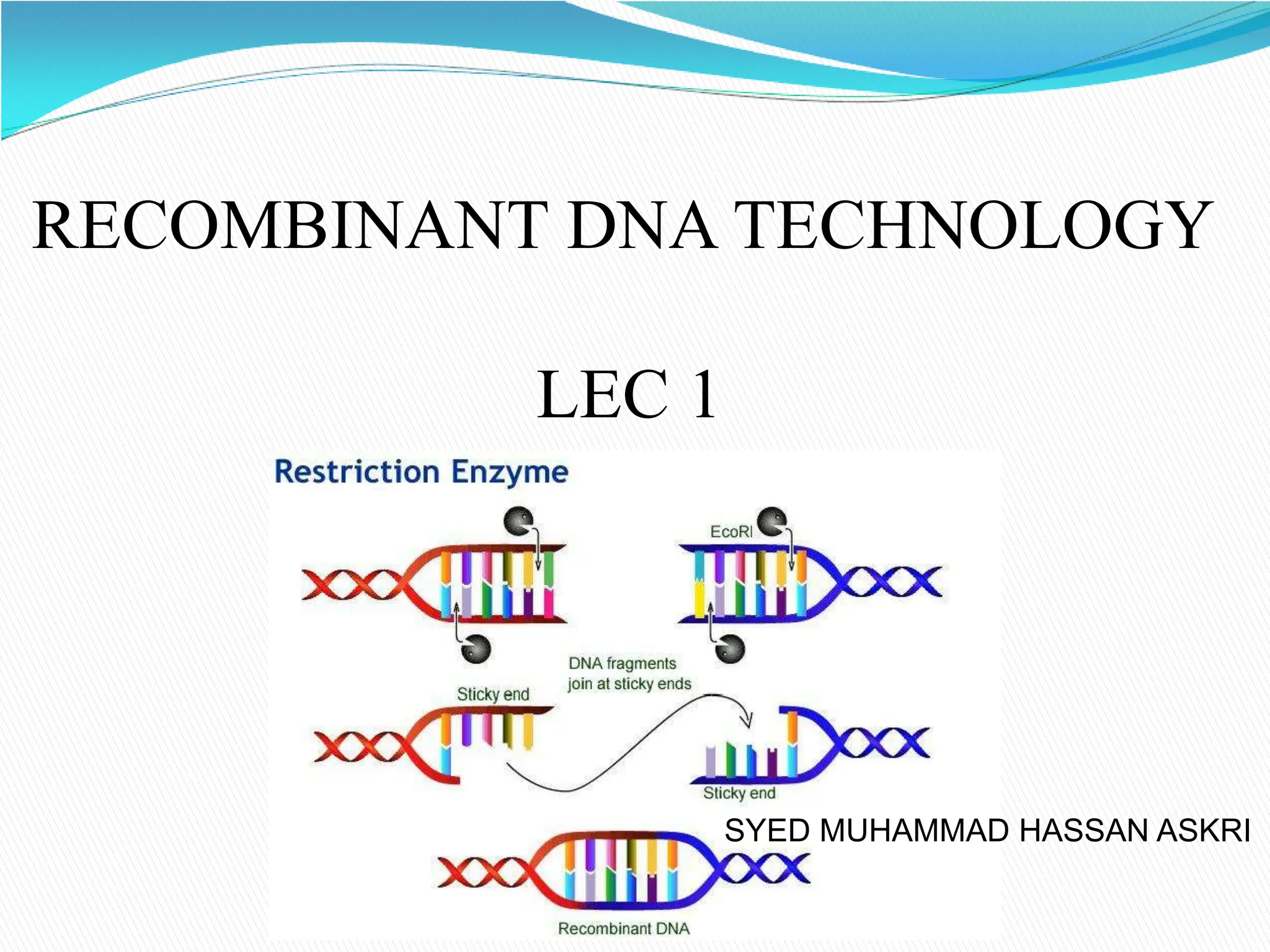 Recombinant DNA technology involves procedures to recombine DNA segments, allowing the creation of recombinant DNA molecules that can replicate within host cells. Key methods include transformation, microinjection, and phage introduction, with applications in producing human proteins like insulin and developing vaccines. Despite its advancements, safety concerns persist regarding the potential creation of pathogenic recombinant bacteria, leading to the establishment of regulatory bodies and safety protocols.
