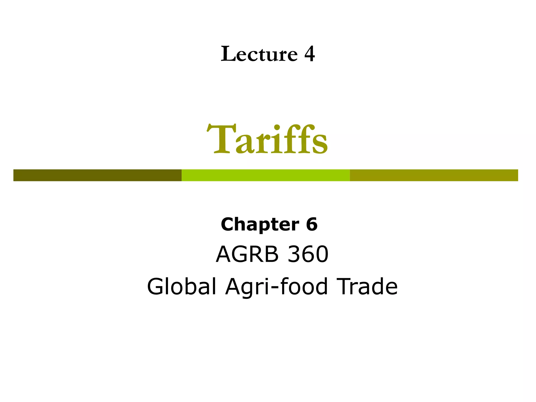 This document provides an overview of topics related to tariffs and global agri-food trade, including: