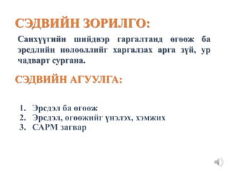1. ЭРСДЭЛ ба ӨГӨӨЖ