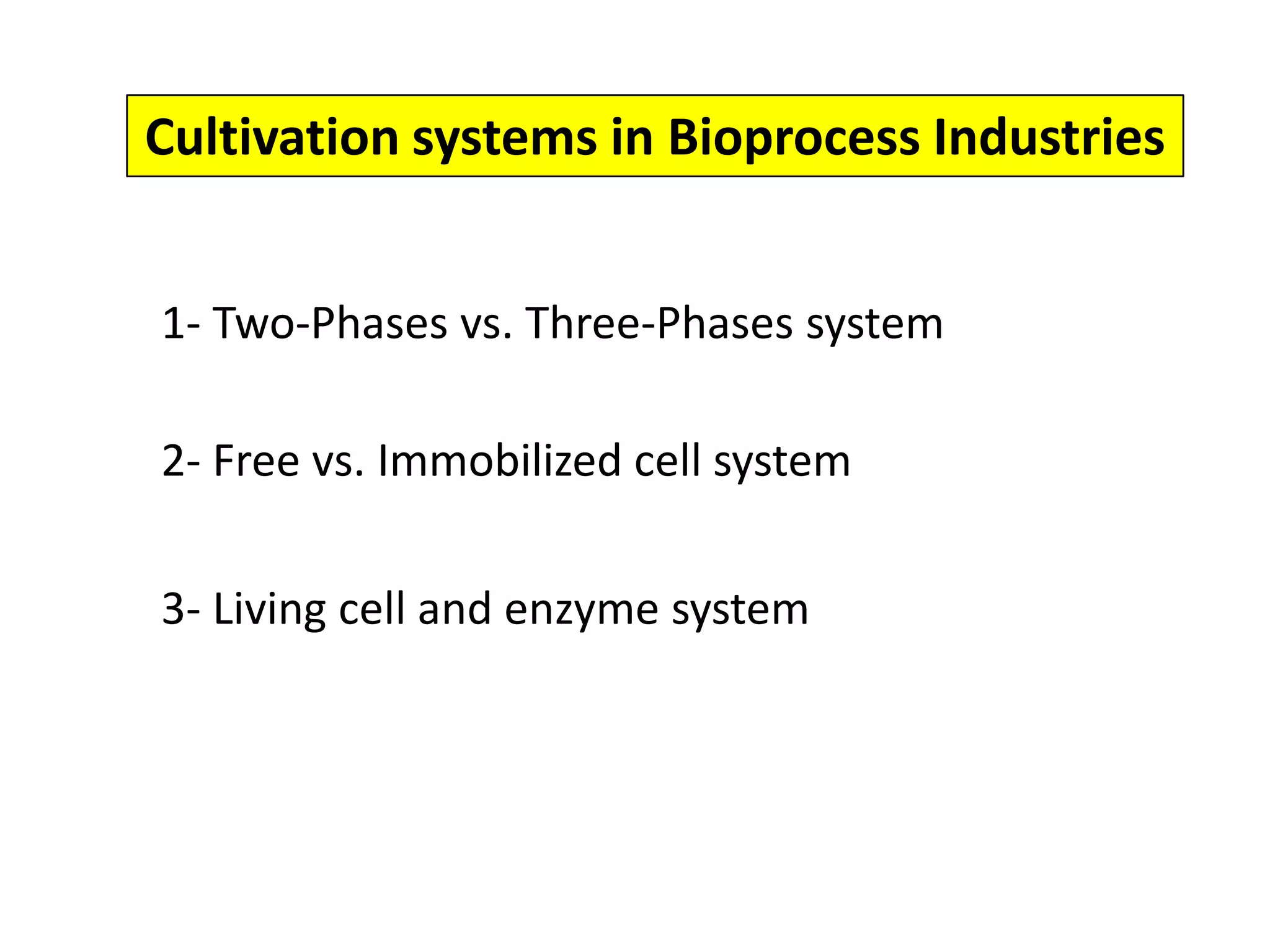This document discusses different bioprocess cultivation systems and operation modes. It covers two-phase and three-phase cultivation systems, as well as free and immobilized cell systems. Batch, fed-batch, and continuous cultivation modes are described in detail. Specific topics covered include microbial growth curves, factors affecting lag phase, kinetics of exponential and stationary phases, and product formation under different operation modes. Advantages of fed-batch cultivation like avoiding inhibition and catabolite repression are highlighted. High cell density cultivation using exponential feeding strategies is also summarized.