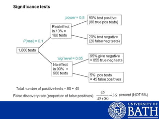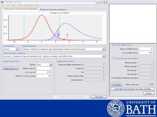 This document discusses statistical power and how it relates to effect size and sample size. It explains that statistical power depends on effect size, sample size, and significance level. Effect size represents the magnitude of the observed effect and can be used to determine the smallest meaningful effect and required sample size. Sample size estimation involves using previous studies to estimate expected effect sizes and perform power analyses to ensure adequate sample sizes can detect meaningful effects. The document emphasizes finding the right balance between effect size and sample size to achieve sufficient statistical power.