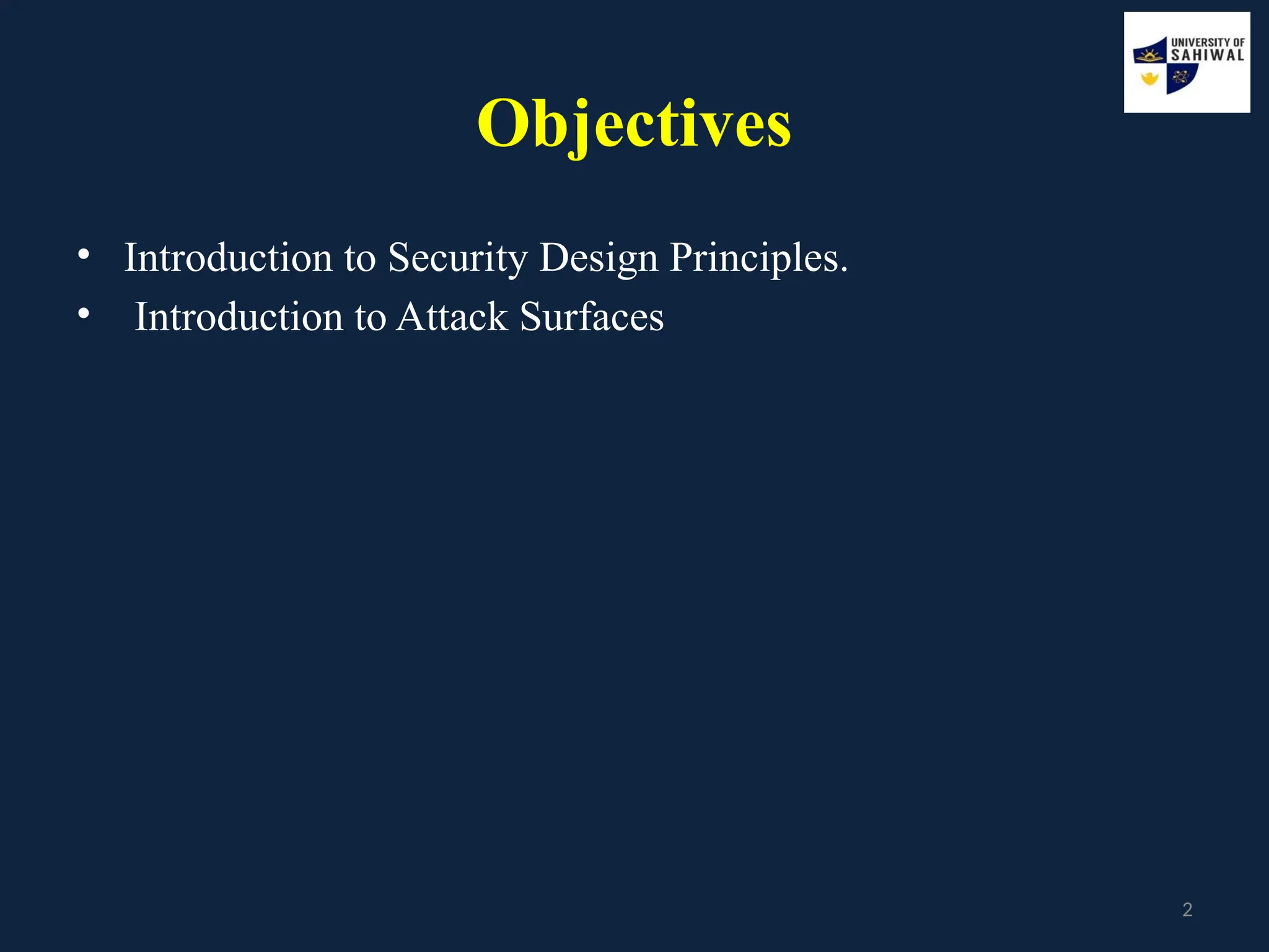 This lecture outlines key information security design principles, including isolation, encapsulation, modularity, layering, and least astonishment, aimed at protecting critical resources and managing attack surfaces. It defines attack surfaces as exploitable vulnerabilities and discusses categories such as network, software, and human attack surfaces. Additionally, it introduces attack trees as a method for analyzing security threats systematically.