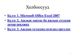 Microsoft excel програмтай ажиллах гарын авлага 2017 PPT