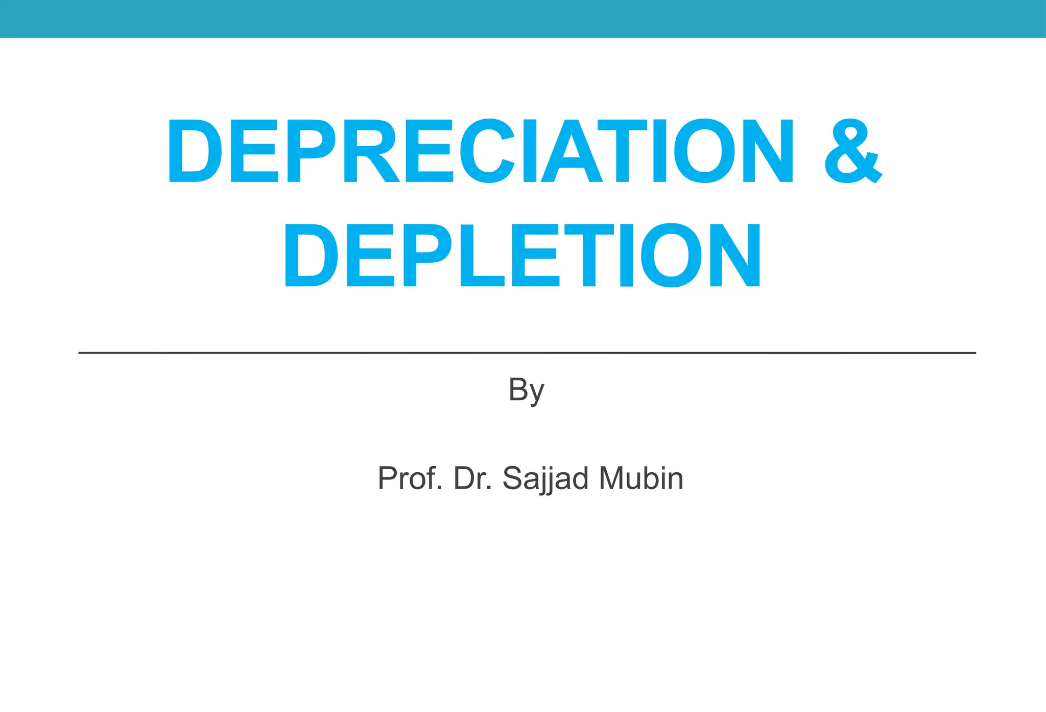 The document provides a comprehensive overview of depreciation, defining it as the decrease in value of fixed assets due to usage, wear and tear, or obsolescence. It outlines basic requirements for depreciation, different types of property, and key terms such as adjusted cost basis, book value, market value, recovery period, and salvage value. Additionally, it discusses various classical depreciation methods, including straight-line, declining balance, sum of the years digit, and unit of production methods, while also touching upon depletion in natural resource contexts.
