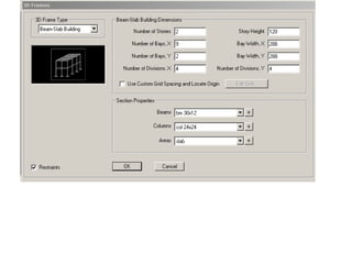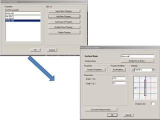 This document discusses building design using shear walls in SAP 2000. It was composed by H.M.A. Mahzuz, an assistant professor and PhD fellow in the Department of Civil and Environmental Engineering at Shahjalal University of Science & Technology in Sylhet, Bangladesh. The document contains information on building design with shear walls using the software program SAP 2000 and includes sections on the first building, second building, and concludes with "The End".