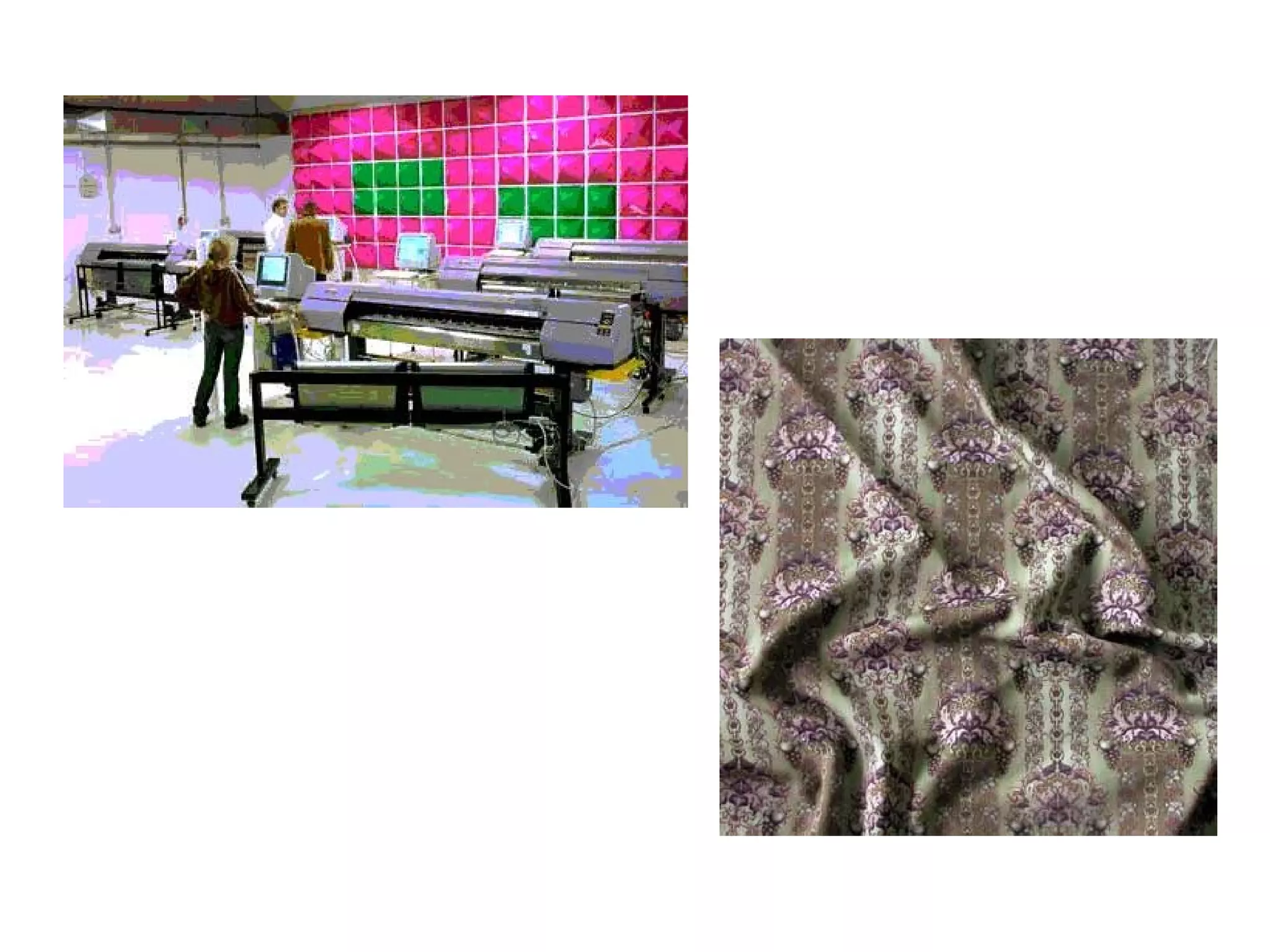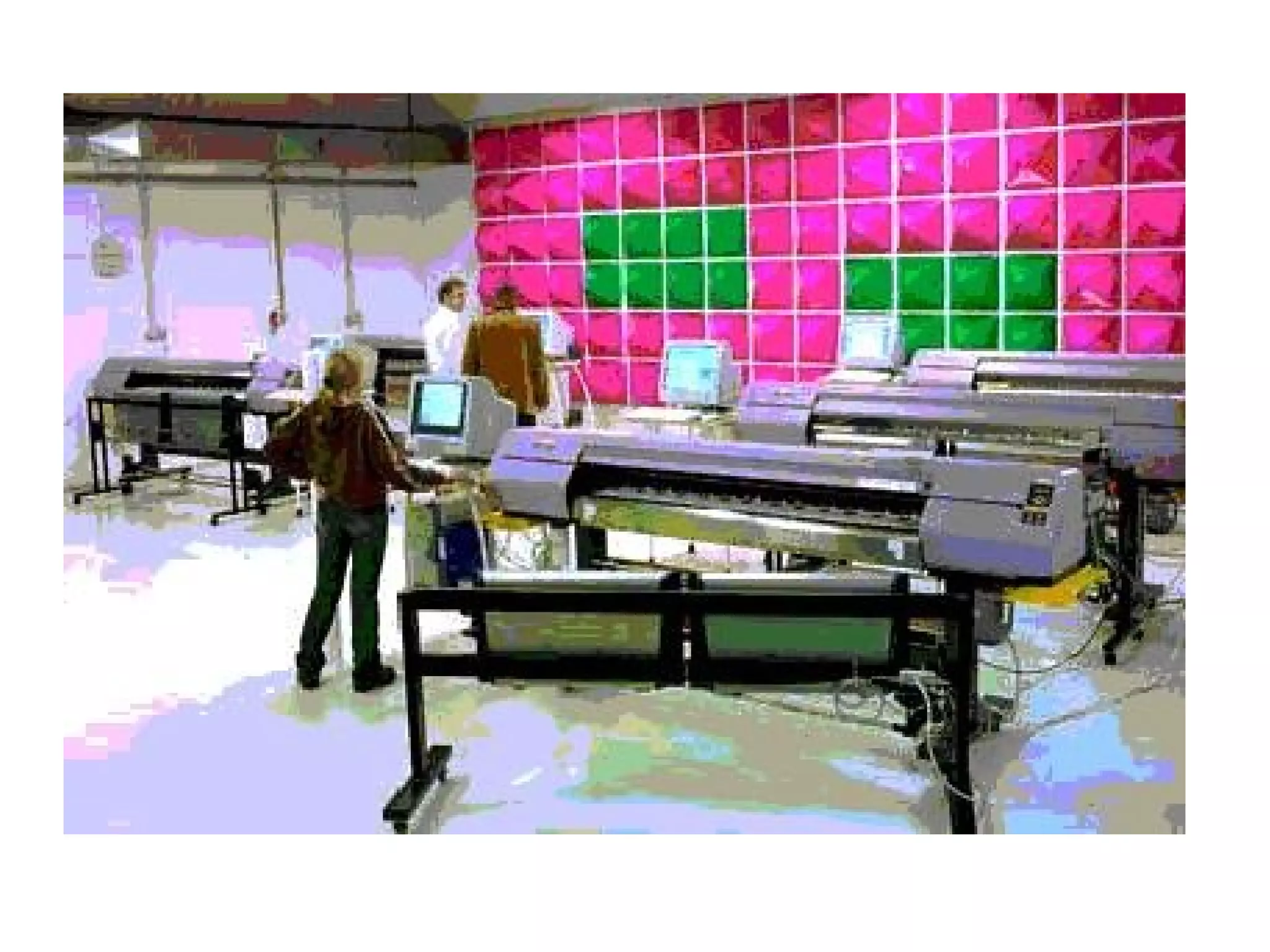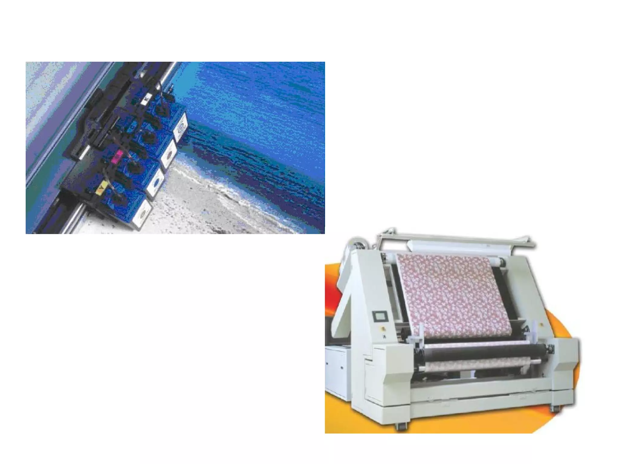 The document discusses digital printing of textiles compared to analog printing methods. Digital printing involves storing the design electronically and using an inkjet printer to apply the design to fabric without screens or plates. It has advantages over analog methods like quicker turnaround times, lower costs for short runs, and more design flexibility. The two main inkjet technologies discussed are continuous inkjet which uses electrically-charged droplets, and drop-on-demand inkjet which forms droplets only as needed using thermal or piezoelectric methods.