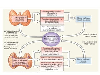 The endocrine system uses hormones to regulate metabolic processes. It includes glands like the pituitary, thyroid, parathyroids, adrenals, pancreas and gonads that secrete hormones into the bloodstream. These target distant cells and trigger metabolic responses, with the hypothalamus and pituitary acting as the primary controllers of the other endocrine glands.