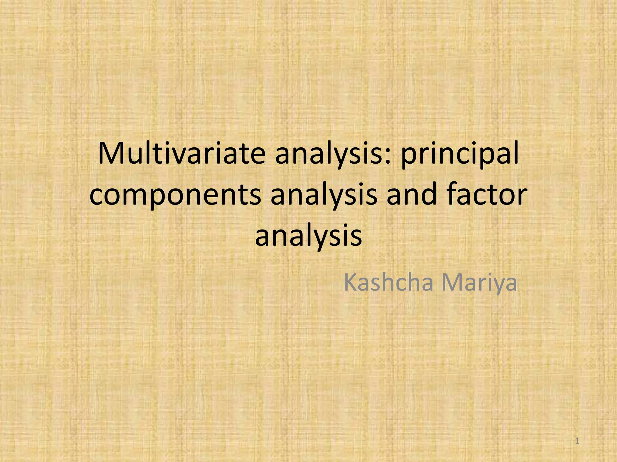The document discusses multivariate analysis techniques, specifically principal components analysis (PCA) and factor analysis (FA), emphasizing their application in understanding data structure. It outlines the stages of PCA, including finding eigenvectors and eigenvalues, constructing matrices, and identifying ranked combinations of variables. Additionally, it highlights the purpose of PCA in reducing data dimensionality and interpreting variance in datasets.