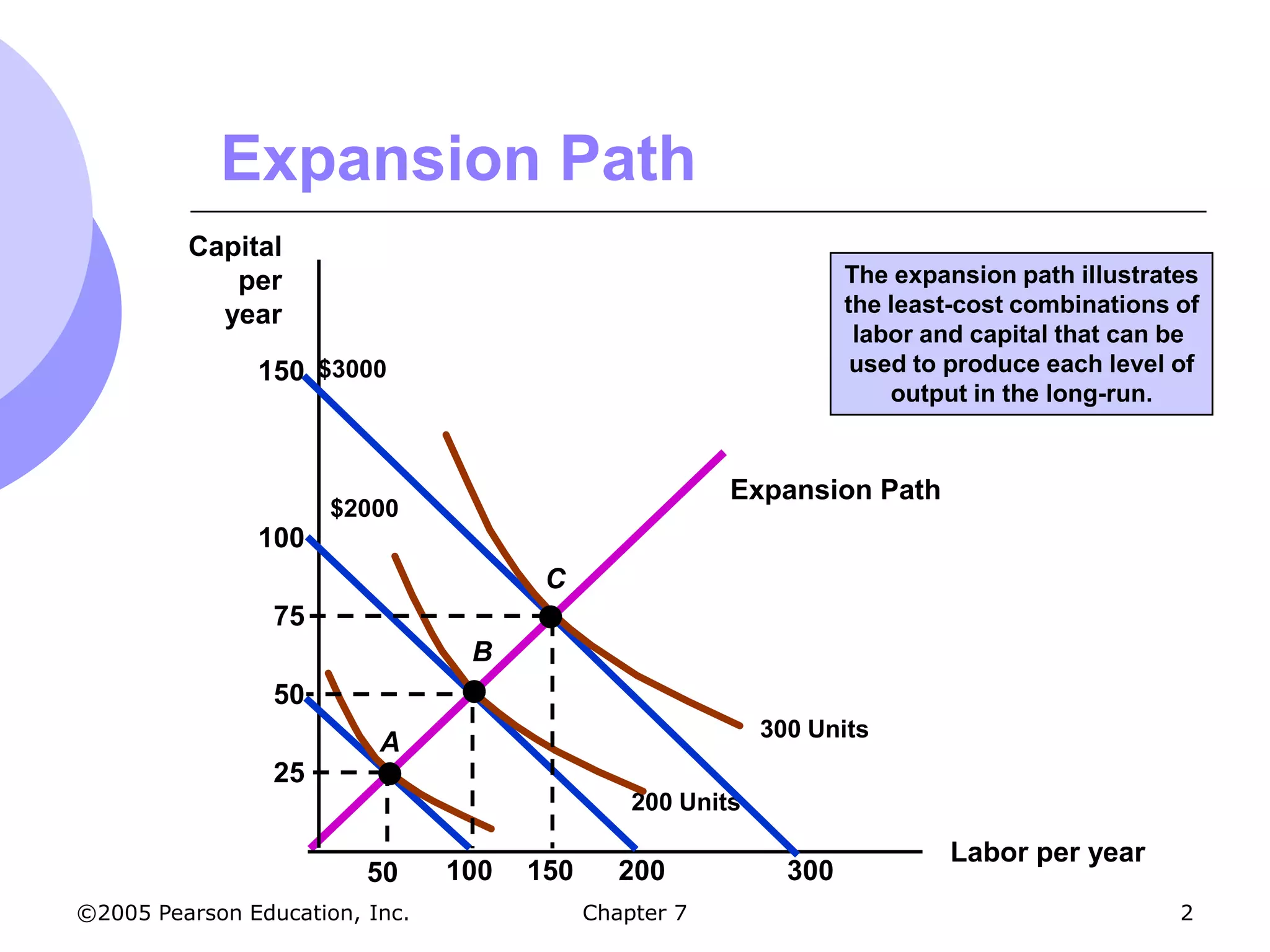 1. The expansion path illustrates the least-cost combinations of labor and capital that can be used to produce different levels of output in the long-run.