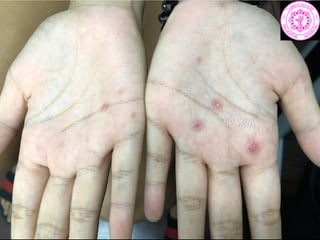 - Initial lesions : erythematous,