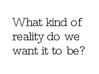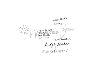 The document discusses different perspectives on the fashion industry and how it is changing. It notes trends moving from mass production to mass innovation, consumer to co-producer, and efficiency to sustainability. Several positions are outlined: one sees the industry as too big to change quickly; another advocates empowering people to save unused clothes; a third promotes collections that remain available long-term; a fourth sees probing connections between critical views and glamour; and a fifth addresses using fashion to portray social and political ideas. The document questions what the fashion code is, how it is influenced, and its impact. It asks how fashion professionals can contribute.