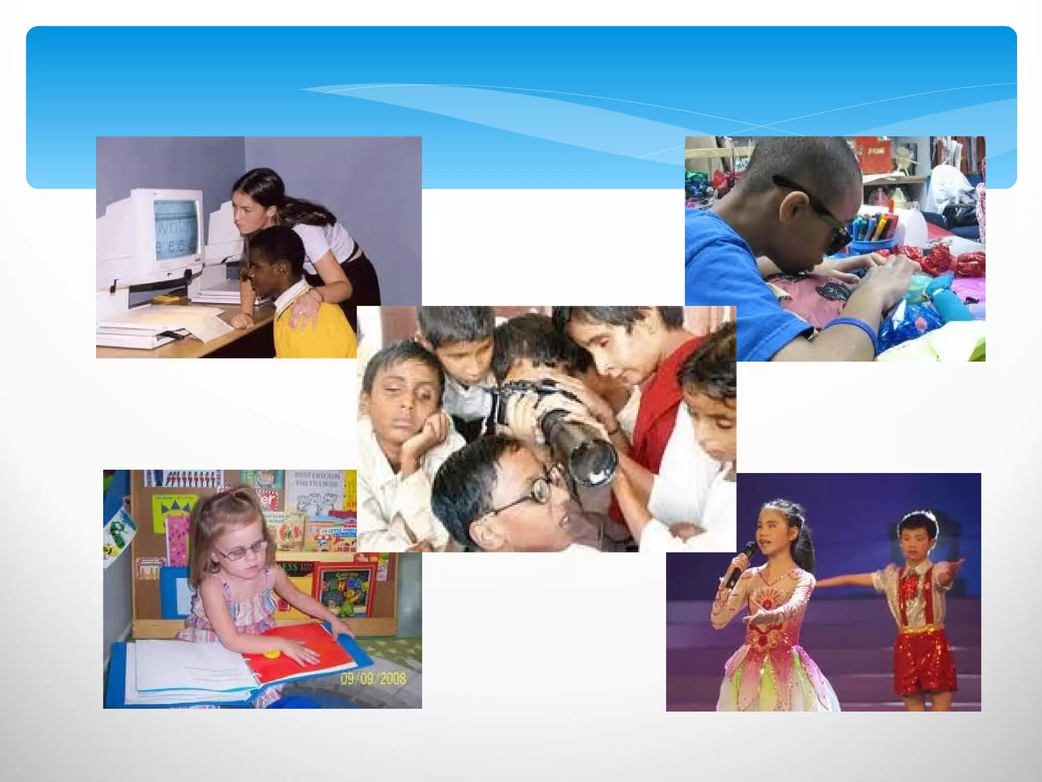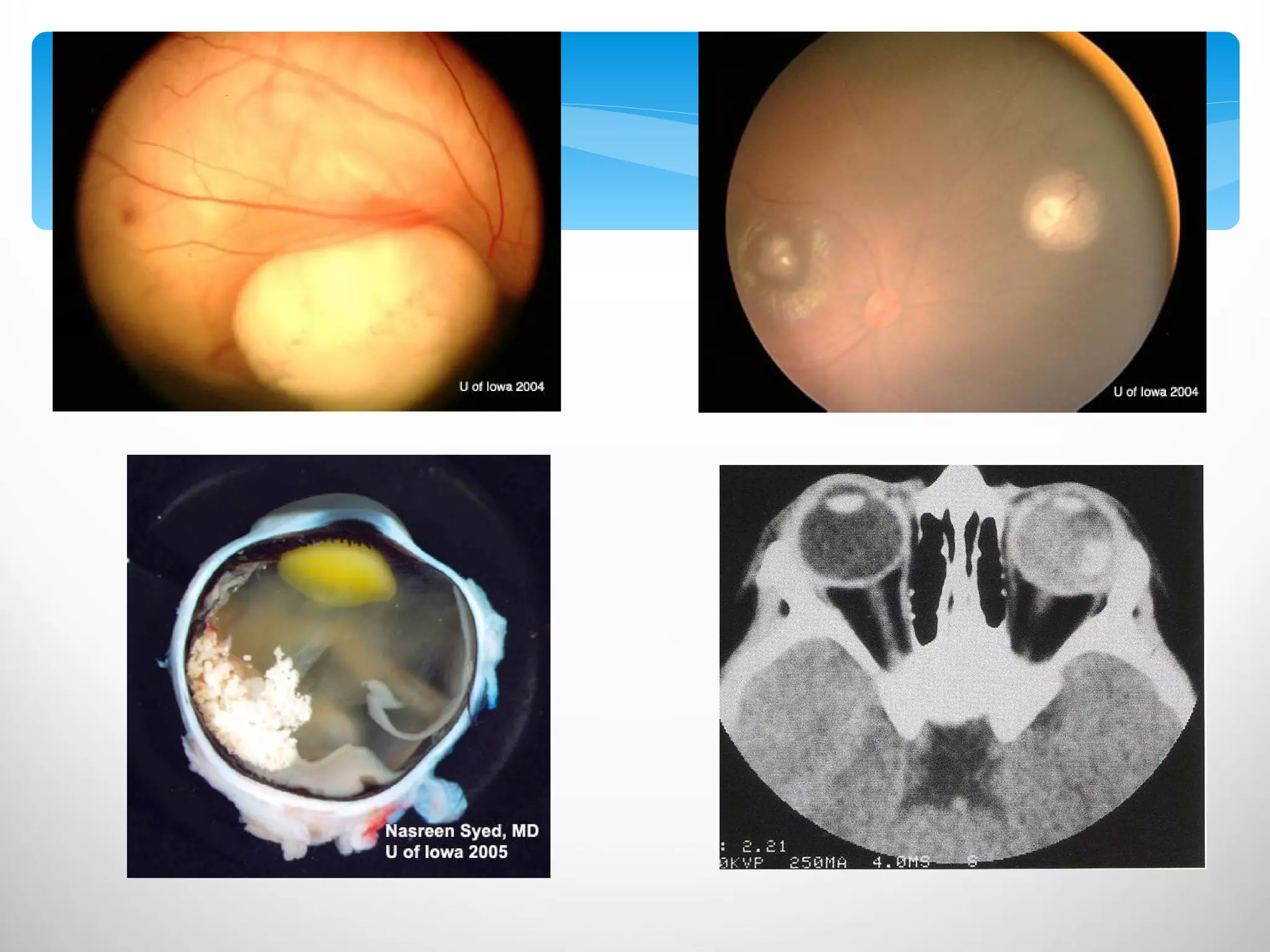 The document discusses visual impairment in children and its evaluation and diagnosis. It defines various types of visual impairment including reduced visual acuity and visual field loss. It describes examining a child's visual acuity, contrast sensitivity, and visual field. Common causes of visual impairment in children mentioned include congenital glaucoma, leucocoria (white eye reflex), cataracts, retinopathy of prematurity, and refractive errors. The evaluation process involves taking a history, performing eye examinations, and conducting investigations to confirm diagnoses. Treatment aims to detect issues early to prevent vision loss and may include optical devices, non-optical methods, and visual rehabilitation.