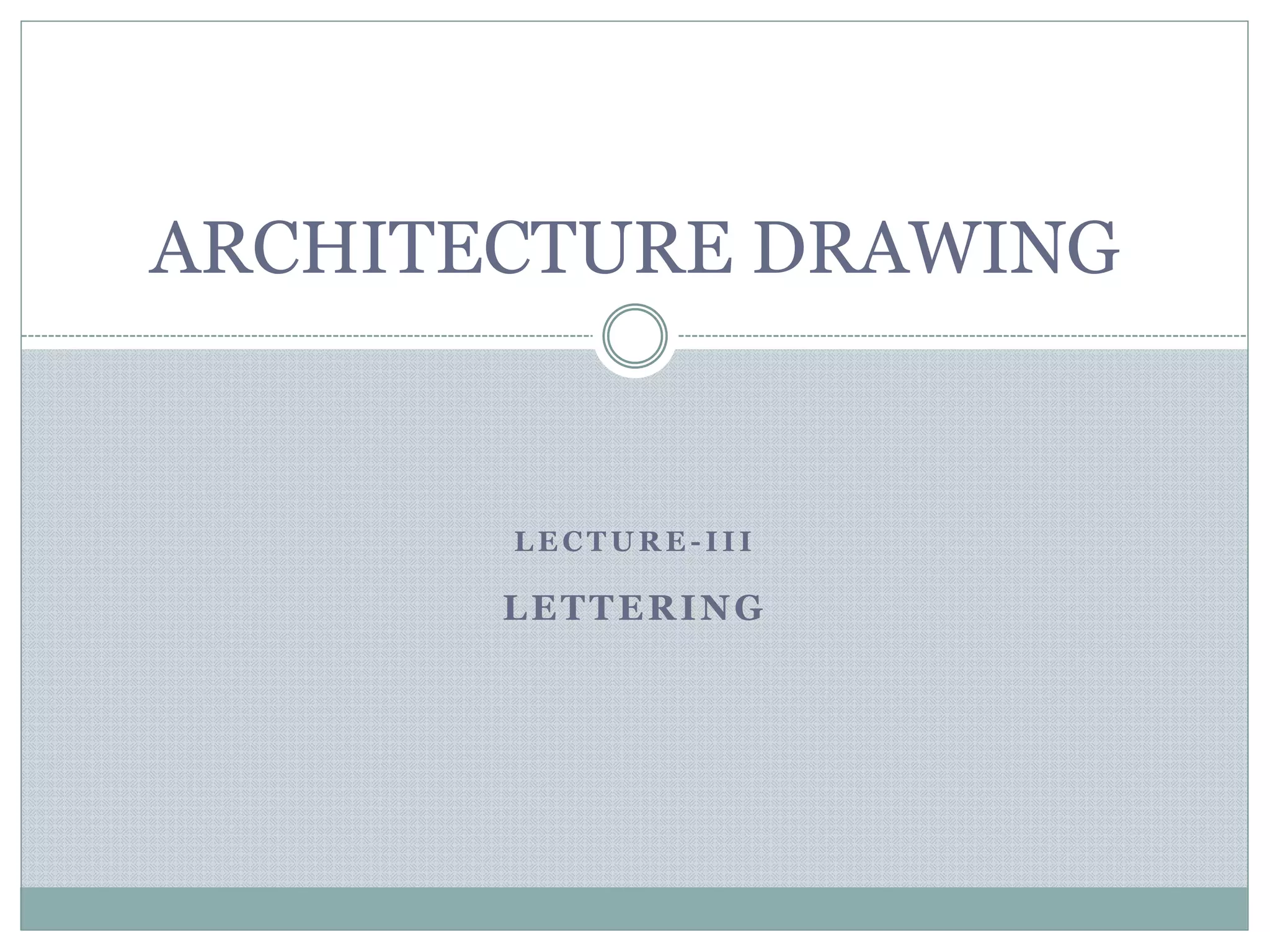 This document provides guidance on lettering for architectural drawings. It discusses that lettering should be clear, legible, uniform in style and size to convey important details on a drawing. It describes single-stroke lettering as the recommended style, which involves vertical or inclined capital letters of uniform width and height. The document also provides tips on pencil grip, freehand lettering techniques, and recommended sizes for different types of text on drawings. Sample letters and numerals are shown to demonstrate proper form within guidelines.
