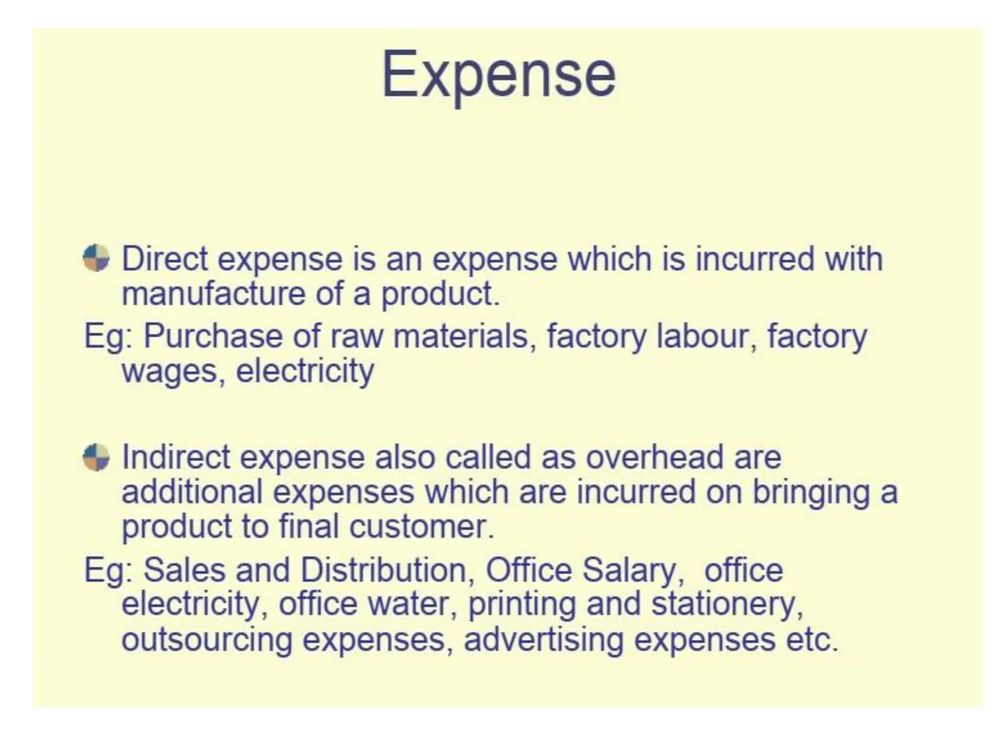 1) Direct costs: For example, Apple manufactures iPhone and a worker spends about 6 hours