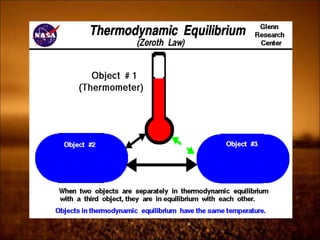 1. Zeroth law defines temperature and thermal equilibrium. It allows for temperature measurement.