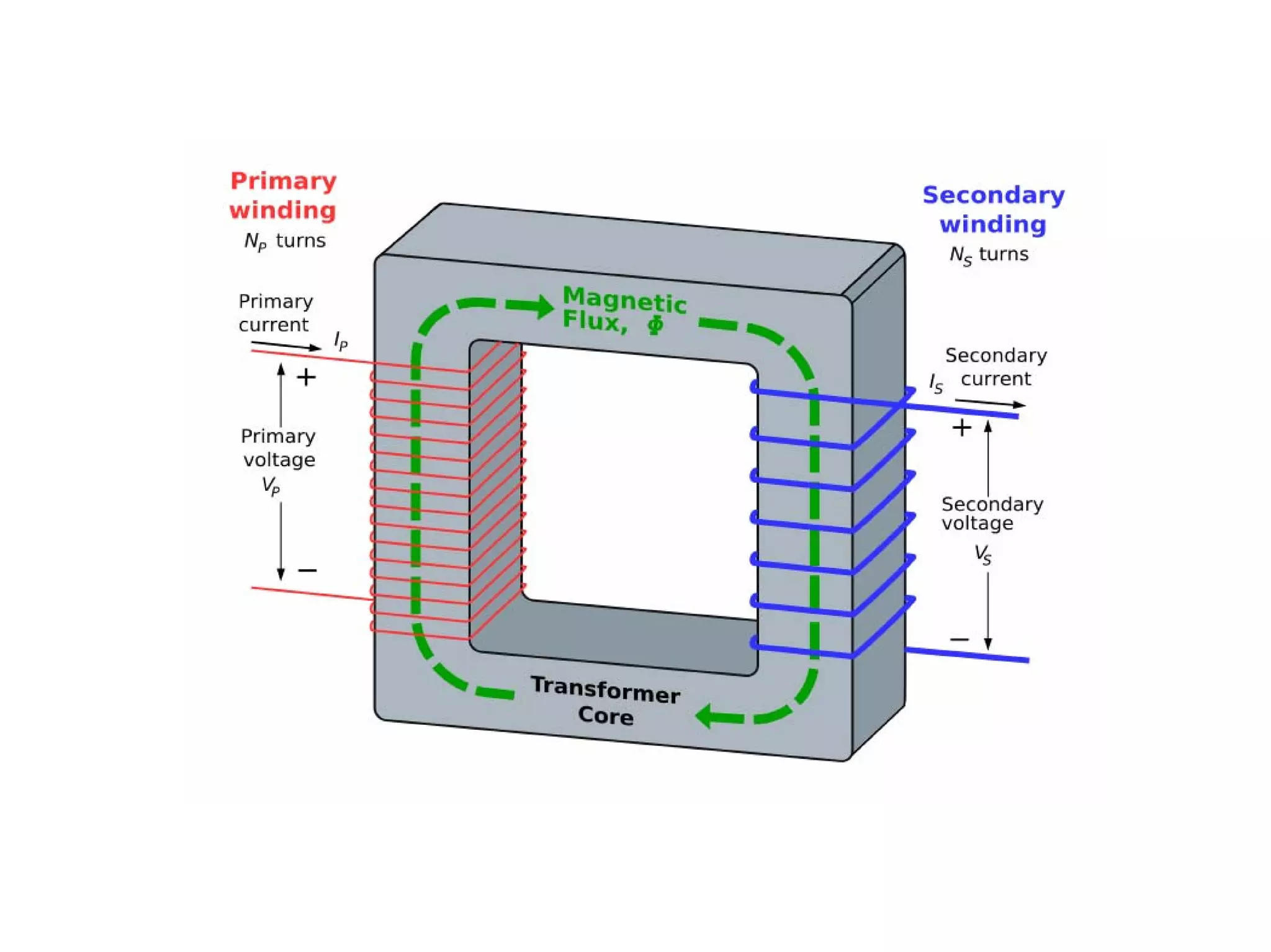 Transformer turns ratio, efficiency, core losses, with examples demonstrating calculations.