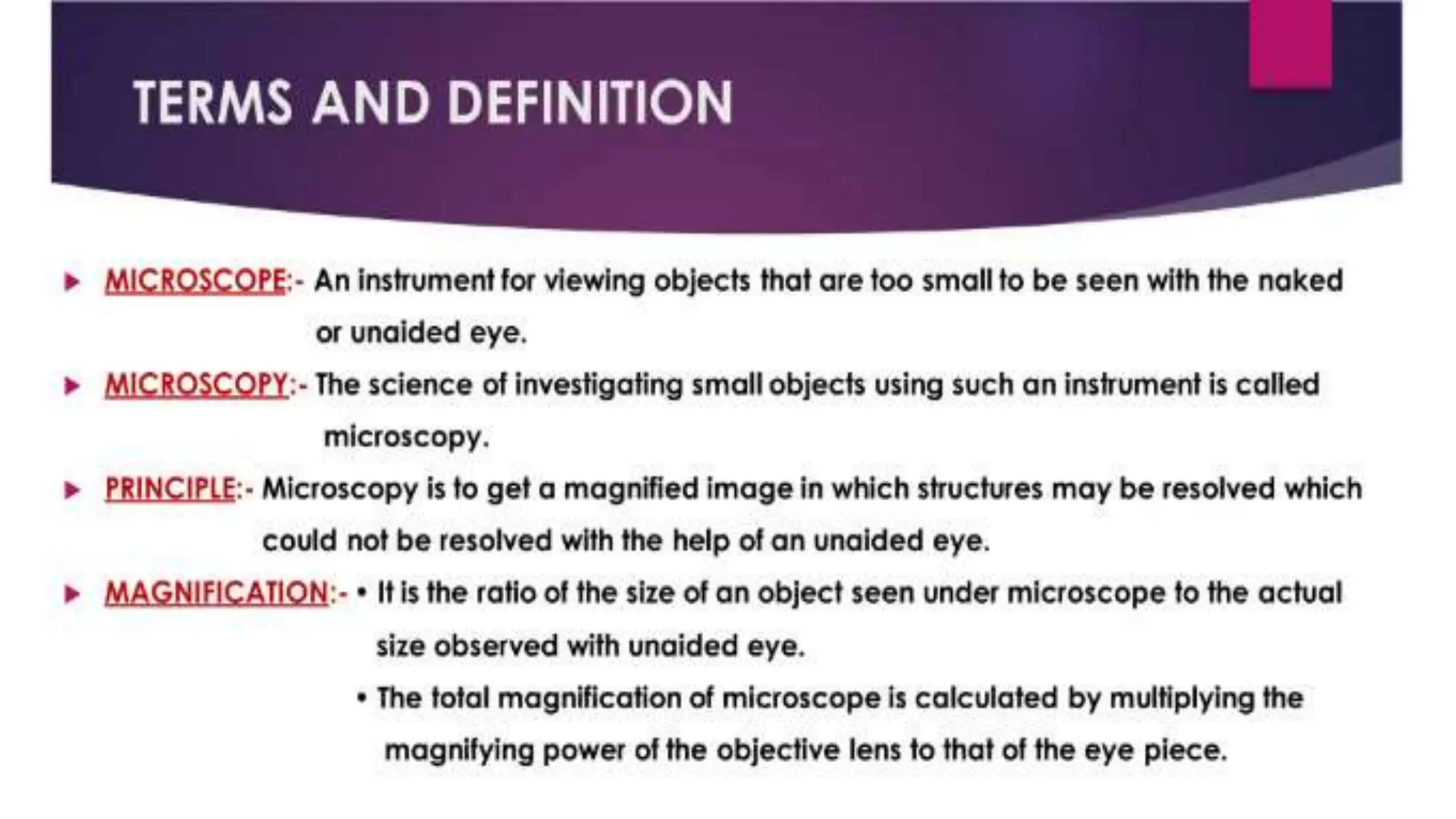 The document is a presentation on the use and components of microscopes in microbiology. It covers types of microscopes, including light and electron microscopes, their parts, mechanisms of operation, and care instructions. Additionally, it outlines rules for using microscopes to ensure proper handling and maintenance.