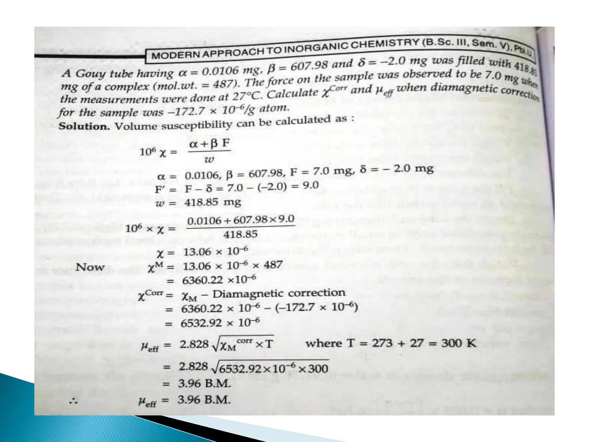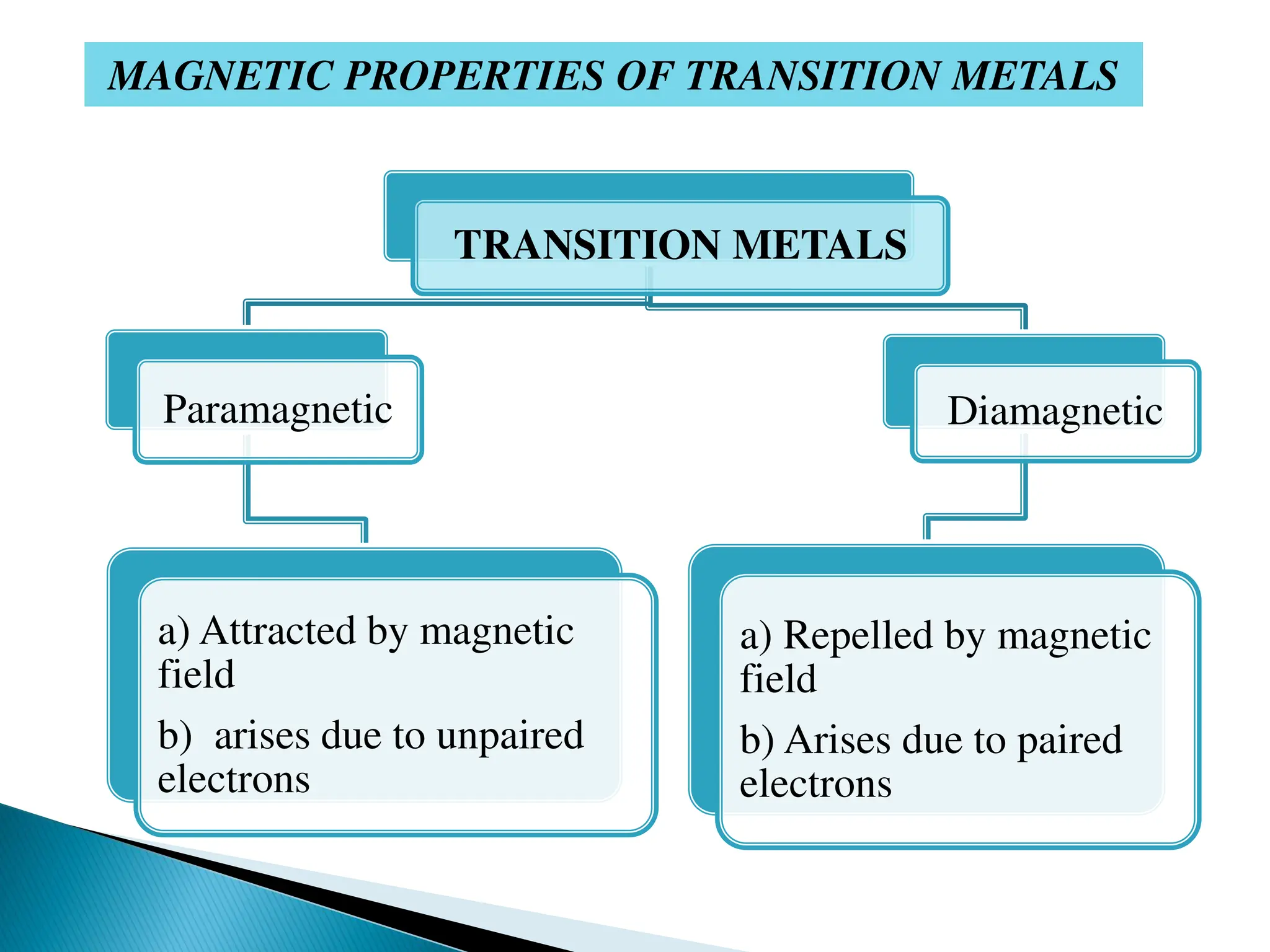 The document discusses the magnetic properties of transition metal complexes, focusing on the concepts of paramagnetism and diamagnetism, the role of unpaired and paired electrons, and the calculation of magnetic moments. It explains various methods for measuring magnetic susceptibility, including Gouy’s and Faraday’s methods, and details the relationship between magnetic susceptibility and moment as well as temperature dependencies in paramagnetic substances. The document also addresses the effects of ligand field on orbital magnetic moments and the importance of different types of coupling interactions in lanthanide ions.