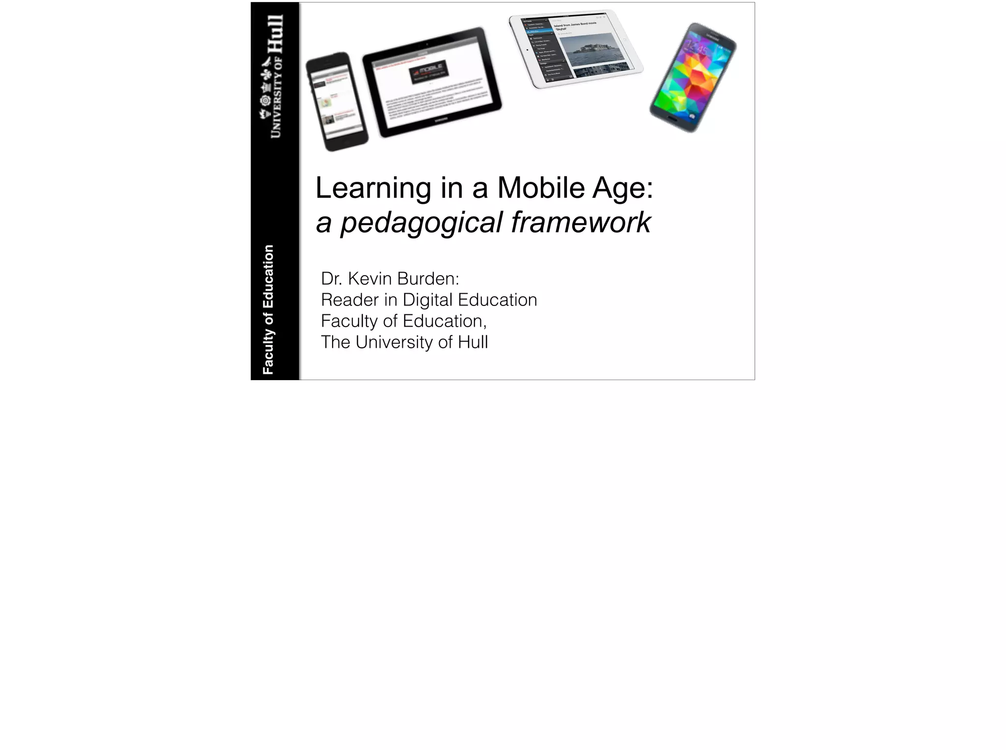 The document discusses the impact of mobile technologies on education, highlighting the ongoing information revolution that is reshaping knowledge dissemination. It outlines previous research regarding mobile devices in educational settings and emphasizes the significant learning that occurs both intentionally and informally through these devices. The presentation also addresses frameworks for understanding mobile technology's role in pedagogical transformation.