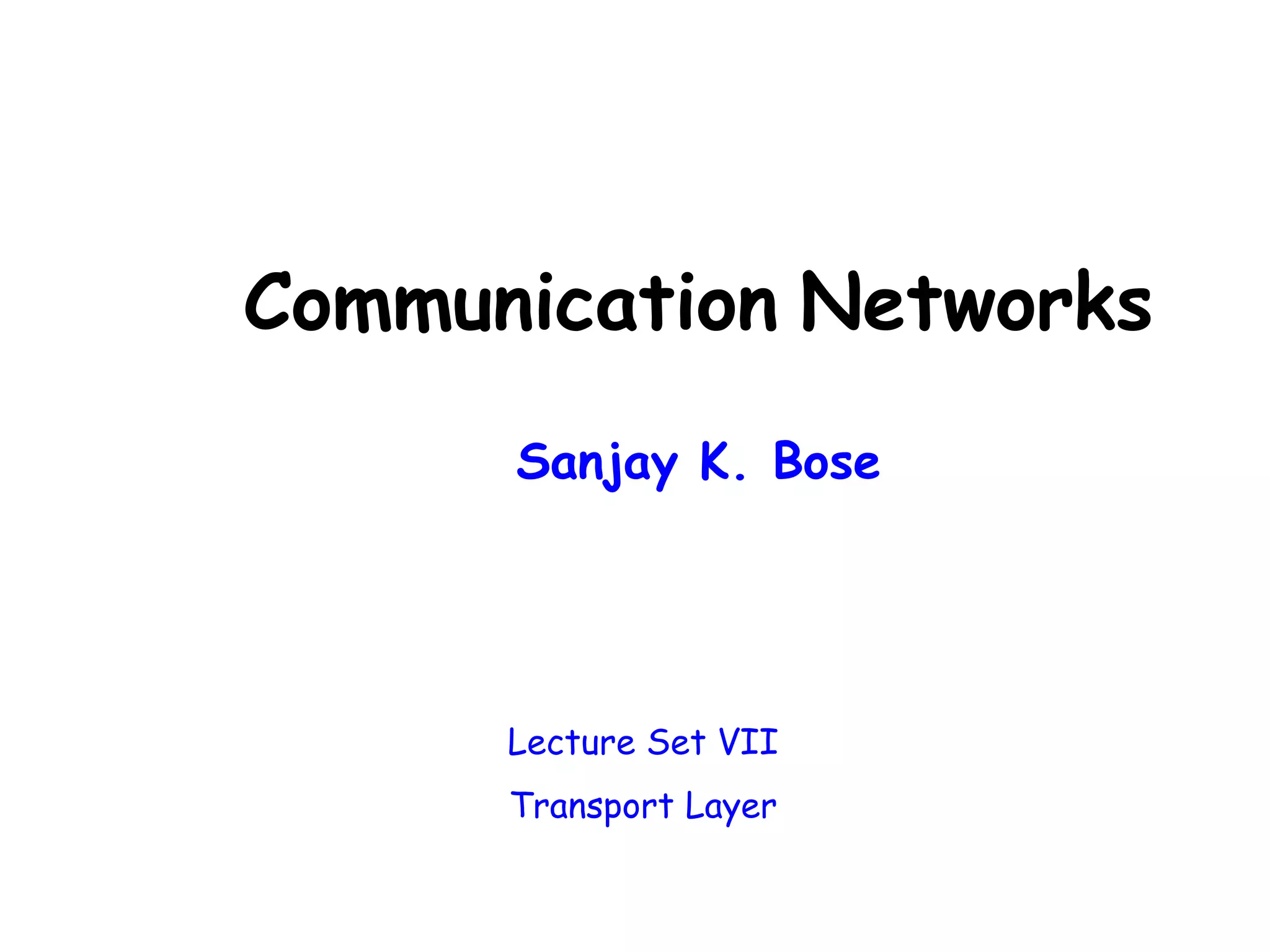 The document discusses the TCP/IP protocol suite and transport layer services. Some key points: