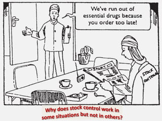 This document provides an overview of strategies for managing drug supplies in health systems. It discusses elements of the drug management cycle including selection, procurement, distribution, storage and security. Specific topics covered include completing requisition forms, receiving and handling discrepancies in drug shipments, proper storage conditions, dispensary practices, and storeroom rules. The overall objectives are to understand the drug management process and correctly apply the various forms and processes used to ensure adequate and secure drug supplies.