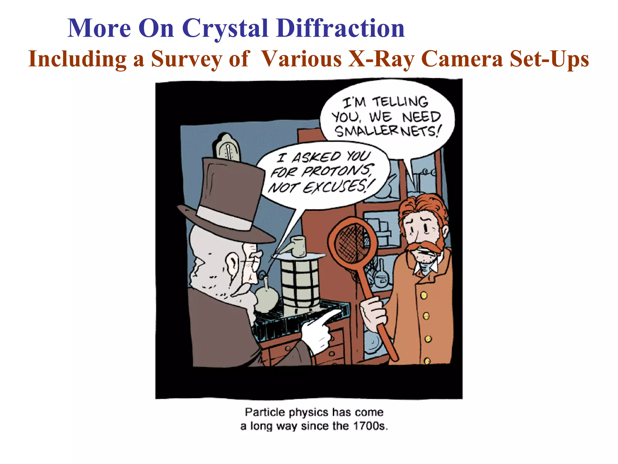 1. There are several types of X-ray cameras used to analyze crystal structures, including Laue, rotating crystal, and powder methods.