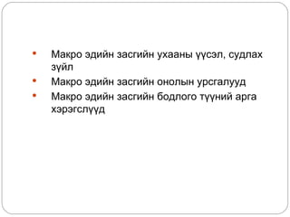 Макро эдийн засгийн судлах зүйл, үндсэн зорилго ба асуудал PPT