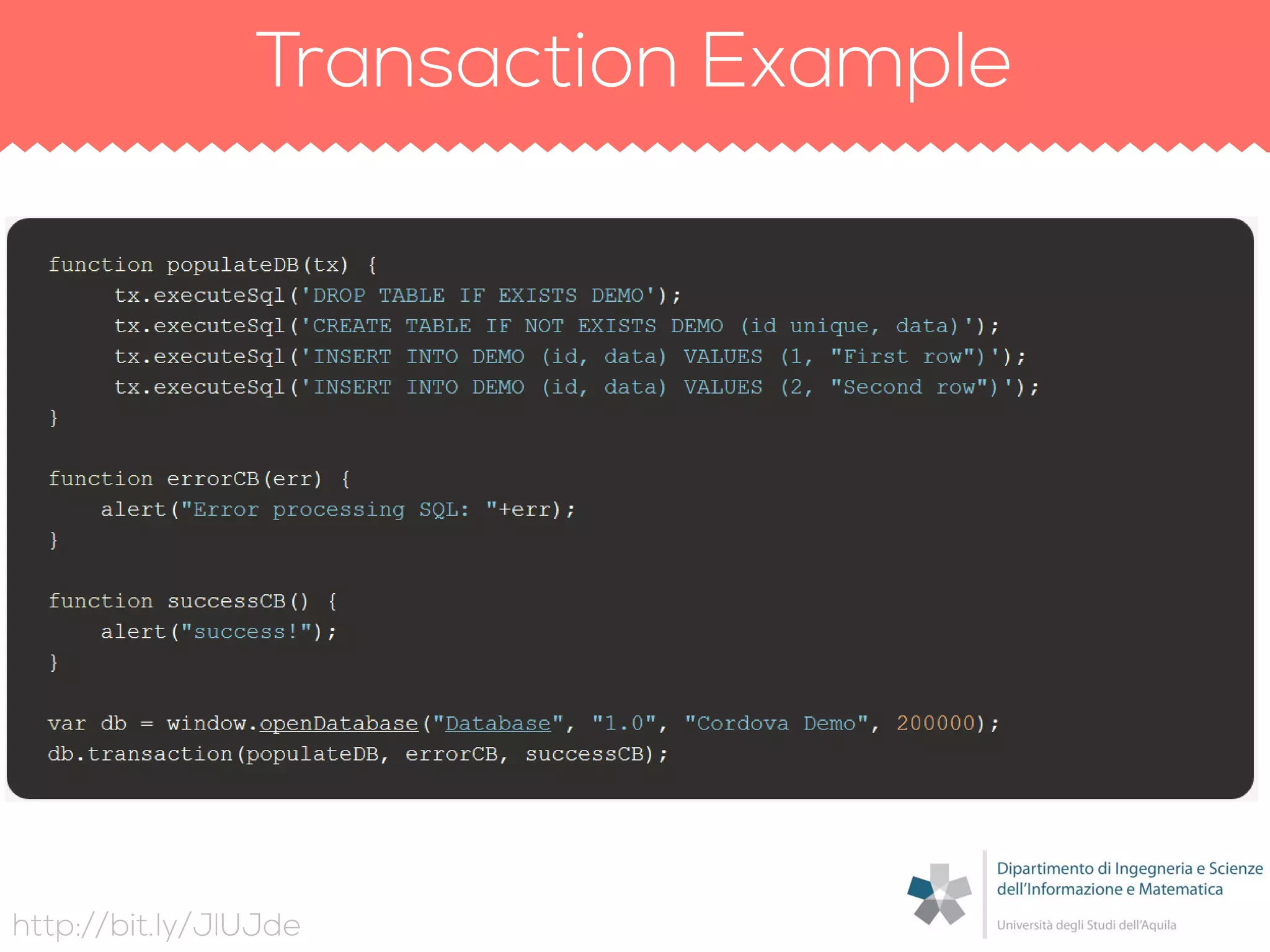 The document contains code snippets related to local storage operations and managing a database in JavaScript. It demonstrates how to create, retrieve, and manipulate objects and arrays using local storage and SQL-like operations for a user database. Additionally, it covers reading and writing files in a local file system environment.