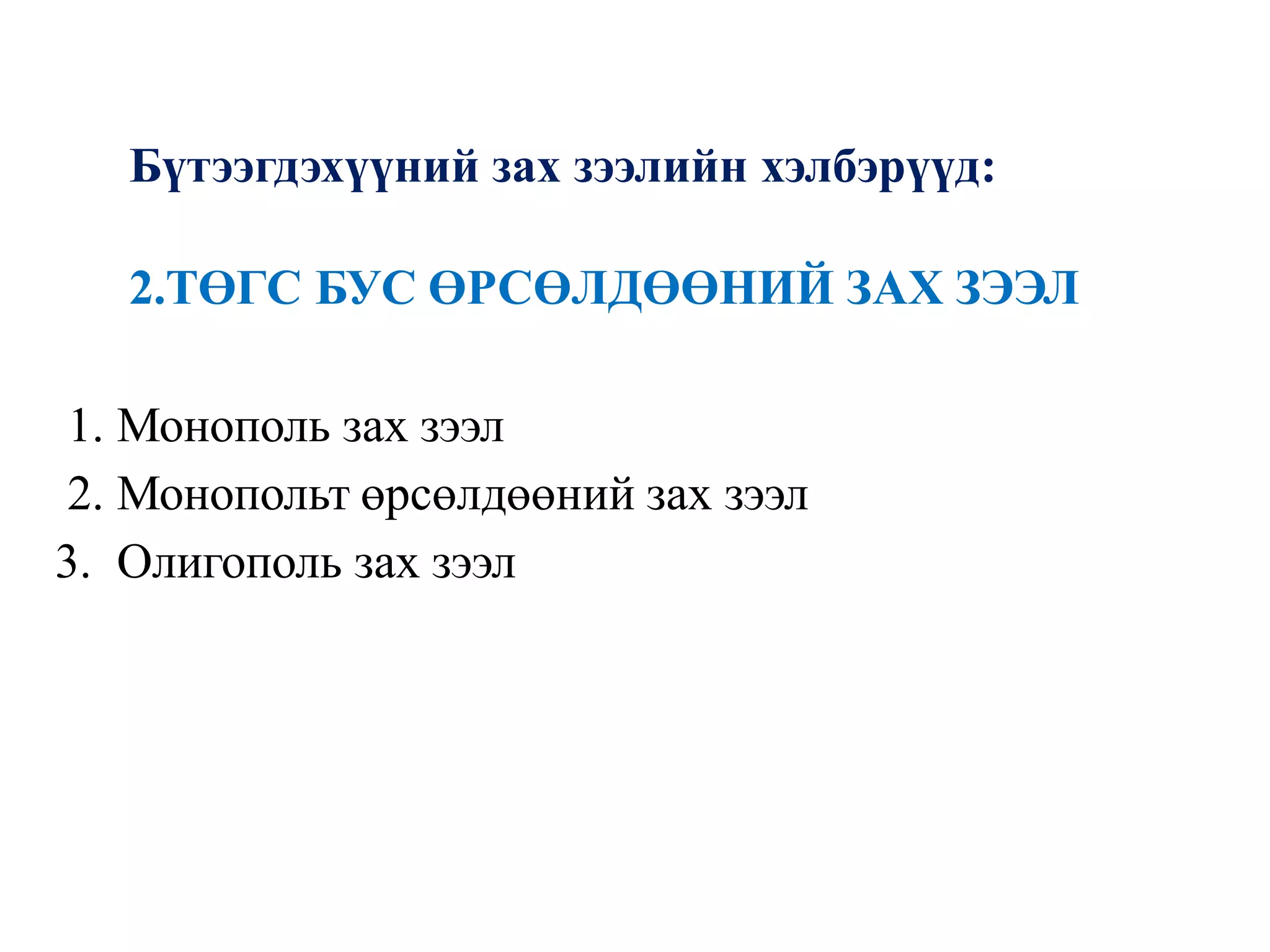 Бүтээгдэхүүний зах зээлийнхэлбэрүүд: