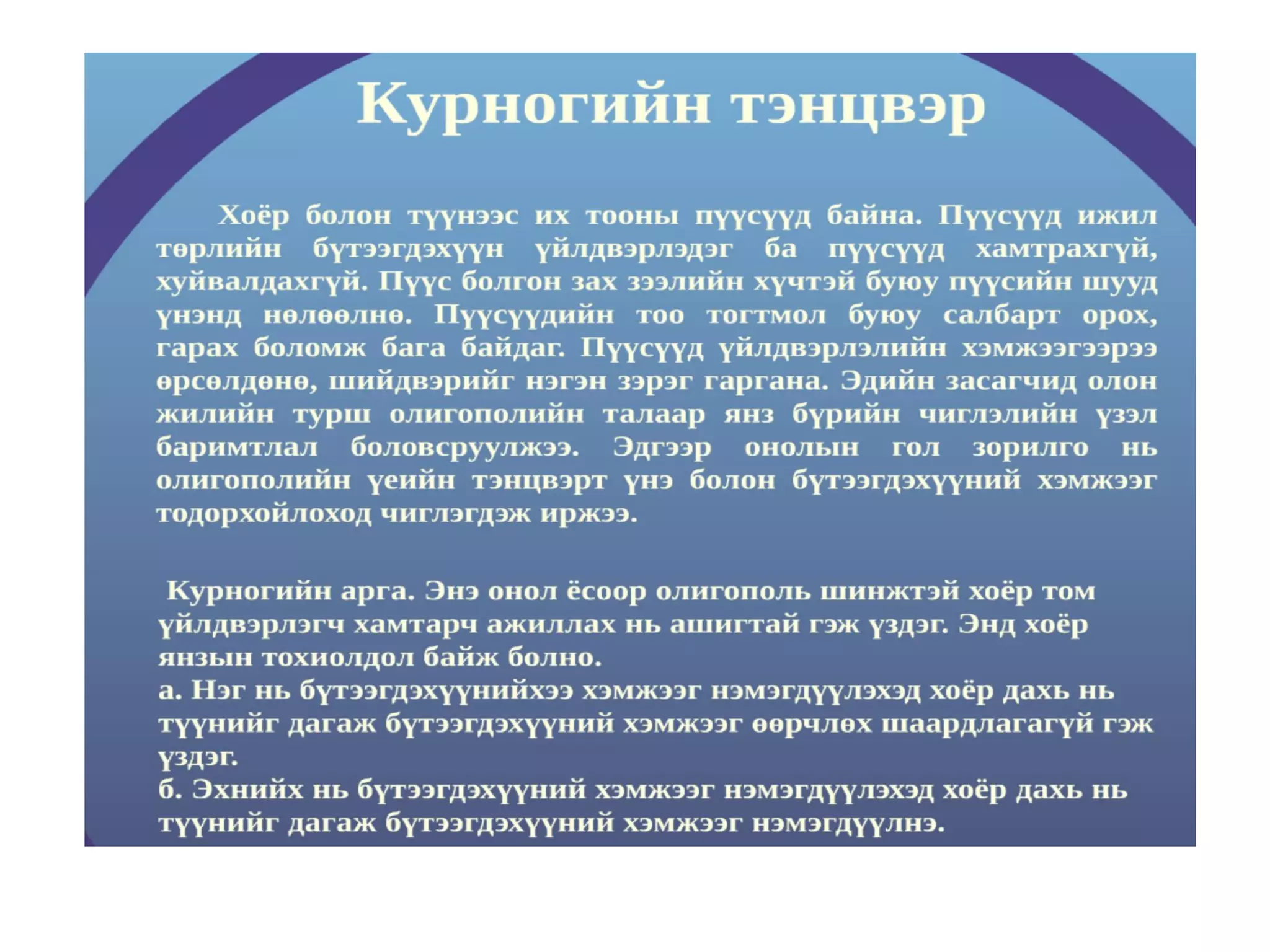 олигополиудад хүчтэй байдгийг тайлбарлана.