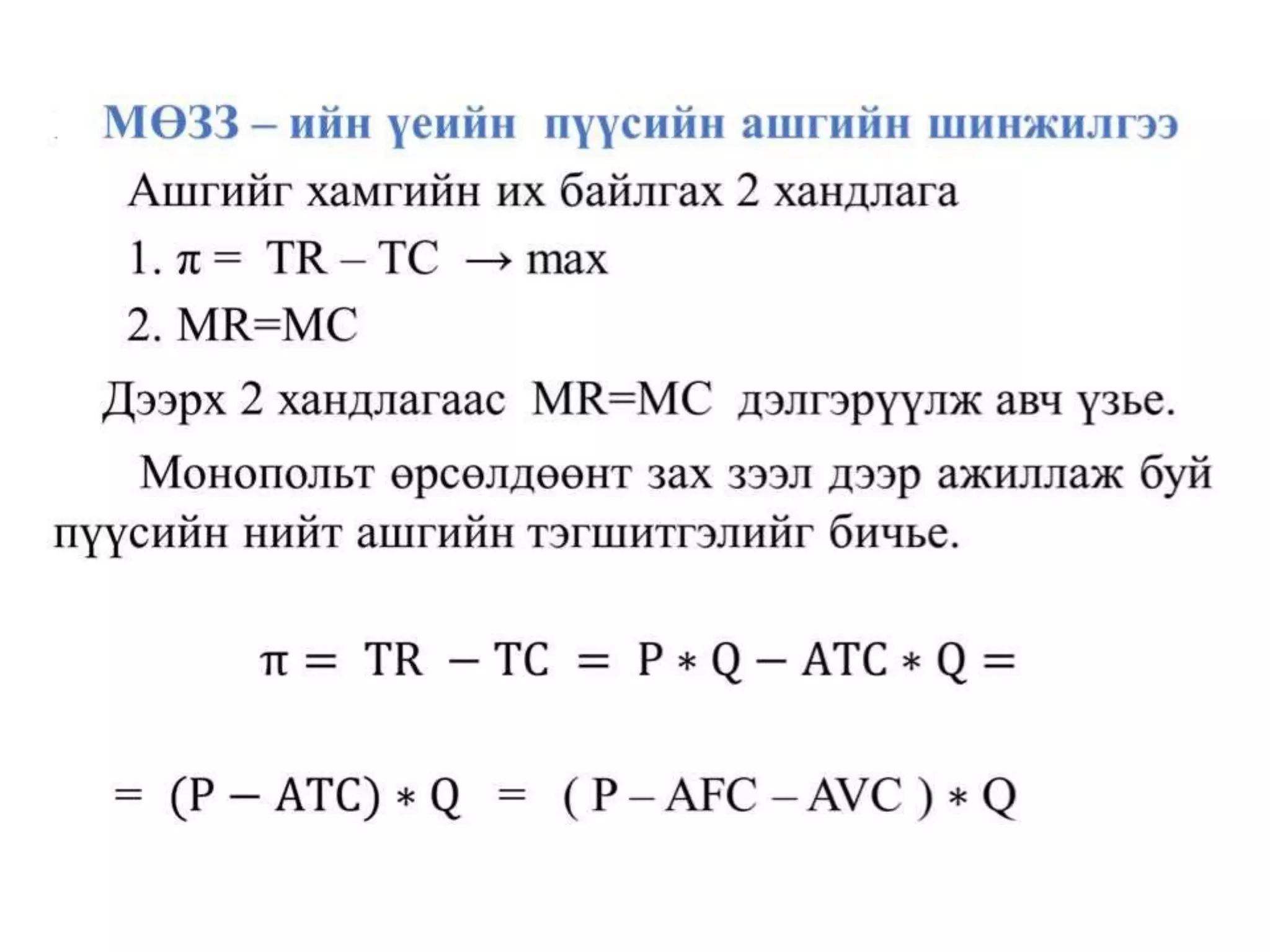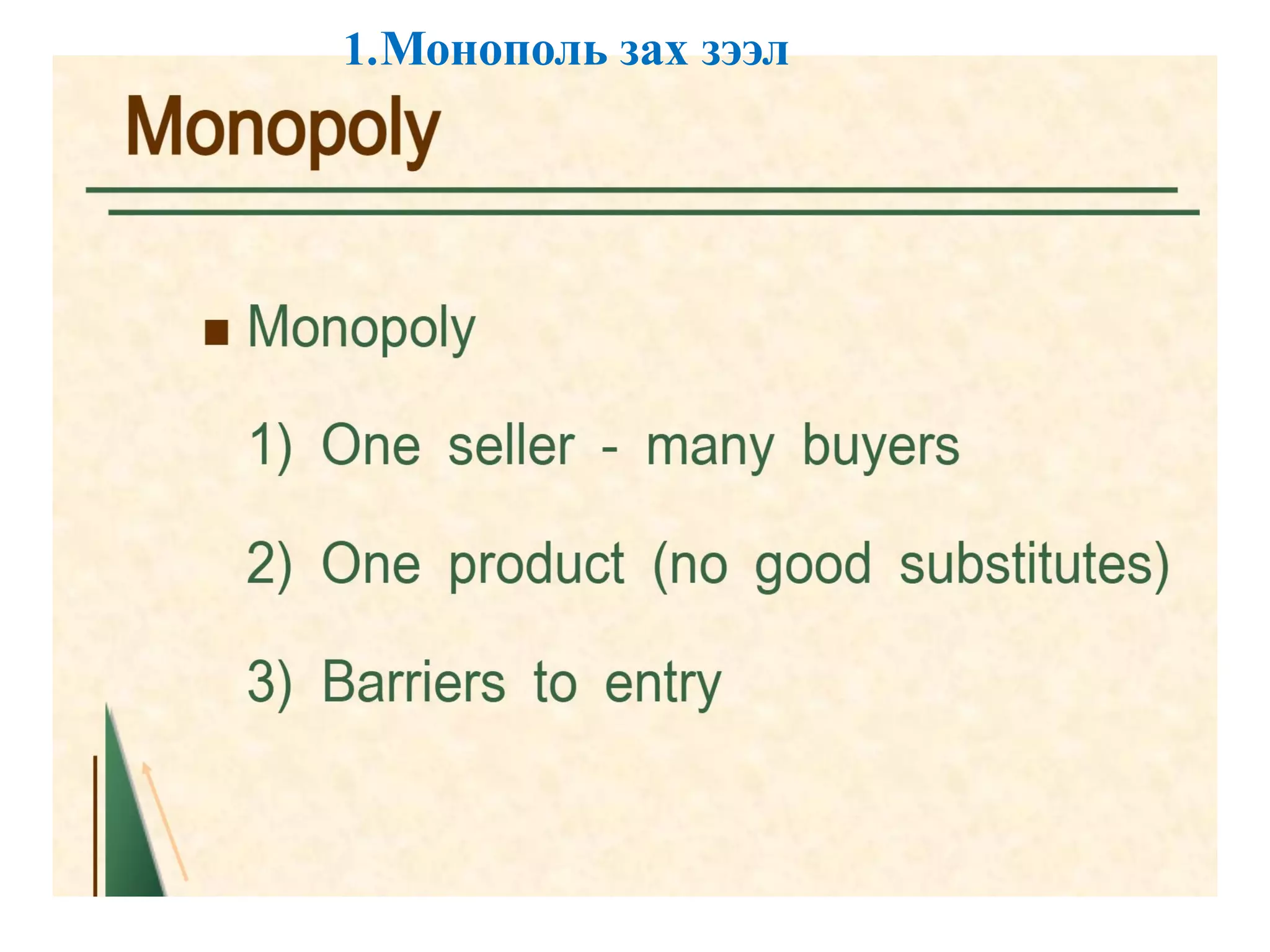 Монополь пүүс эрэлтийнхуульд захирагдах бөгөөд
